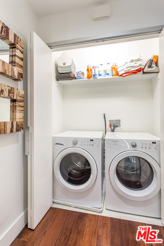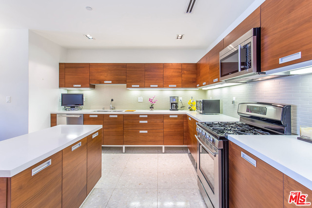 Highly sought, 4th floor over-sized unit w/dual master suites & views of the Hollywood skyline. Designed by noted architect Stephan Kanner, "The Hollywood" sits on a prime location in the Heart of Hollywood featuring an open floor plan, LR fireplace, 9'+ ceilings & a private balcony. Gourmet kitchen w/walnut Pedini floating Italian cabinetry, stainless steel Jenn-Air appliances, Caesar-stone counter tops, European Terrazzo tile & walnut hardwood floors. Designer lighting & plumbing fixtures by Duravit, Philip Starke & Hans Grohe, NEST thermostat, & side by side full size washer/dryer in unit. State of the Art fitness center w/ballet bar, billiards lounge w/pool table, flat screen TV & massive sectional sofa. 24 hour security/concierge services, gated parking garage w/secured entry, 22 guest parking spaces AND the building sits on the site of the historic Villa Capri, once owned by Frank Sinatra.