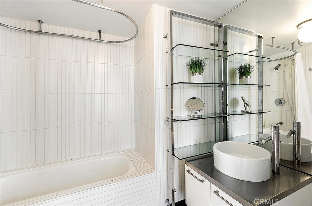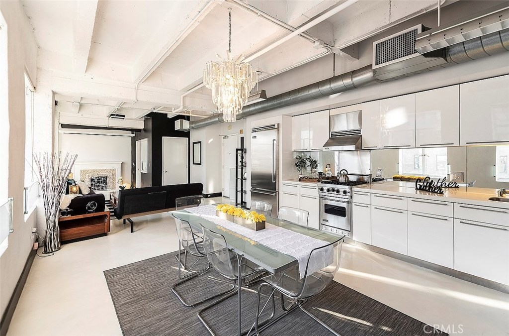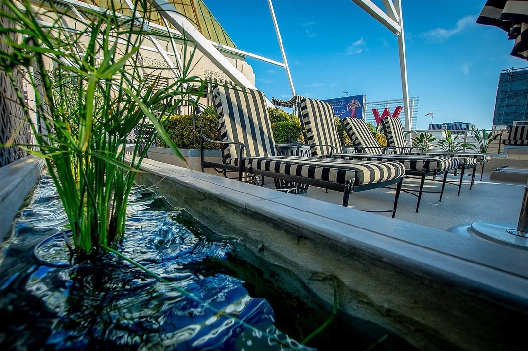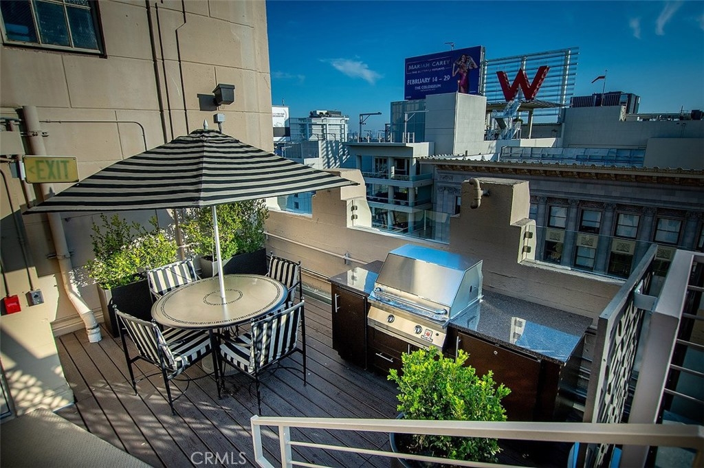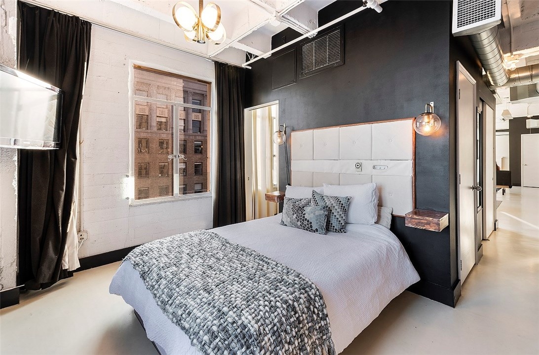 The Lofts at Hollywood and Vine! This loft is situated at the front of the building facing Hollywood Boulevard, an end unit with only one shared wall. The natural sunlight spills in through the tall windows into the bedroom and living areas making this home light and bright. The stainless-steel appliances complement the modern design of the kitchen along with the concrete floors and exposed concrete walls. The living area is complete with a faux fireplace, projector and screen; the ultimate in entertaining spaces. The bedroom has corner windows allowing for those evening views of the city lights and an attached private bathroom. There are laundry hook ups in the hall closet and a guest bath with shower/tub combination. The sensational views from this unit include the Hollywood sign, Capitol Records building, The W Hotel and beautiful Pantages Theatre sign. The roof top patio is perfect for entertaining or just relaxing on the lounge chairs, listening to the water feature and enjoy the city lights. The Metro station is across the street at the W and Trader Joe’s around the corner. Valet parking, the 24 hour doorman and Hollywood entertainment complete this to be one of the most desired locations in Hollywood.