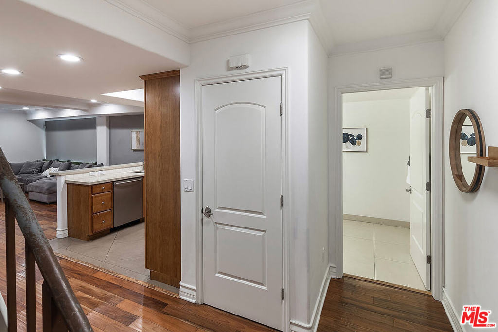 This 2-story, top-floor condo in the heart of Hollywood rests just outside the luxurious Hancock Park area. There are 22 units in this complex with only 3 of them being 2-story. The unit flaunts natural light throughout, updated wooden floors, base & crown molding, coffered ceilings, caesar stone countertops, stainless steel appliances, & 2 entries/exits. An open floor plan with kitchen, living, dining area, balcony with storage, and powder room make up the ground floor. On the 2nd floor is the master bedroom + 2nd bedroom, both with en-suite bathrooms + ample closet space. The laundry closet is conveniently located on the 2nd floor with a W/D hookup & room for storage. This open-air condo complex boasts a stylish lobby, rooftop for lounging with 360-degree views of the city (including the Hollywood sign), and garage parking - 2 side-by-side spaces belong to this unit and conveniently there are 10 visitor spaces. Come view this rare 2 story unit in desirable Hollywood and make it your new home!