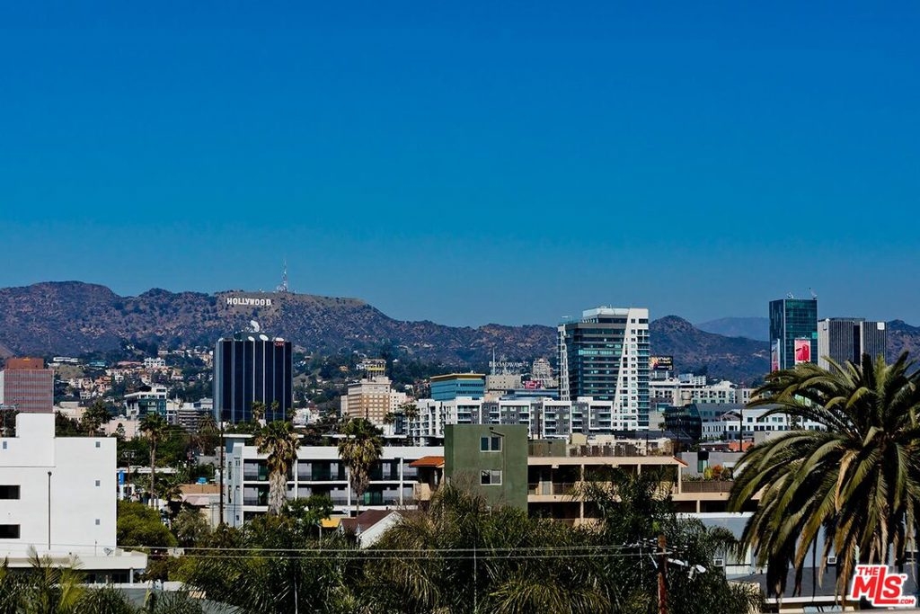 Come see this bright and gorgeous condo in the heart of Hollywood! At the beautiful and open air Villa La Pietra you will find controlled access and an incredible rooftop deck with views of the Hollywood sign, Century City, and downtown. The spacious and quiet top floor unit has an extremely pleasing, bright, and livable floor plan. The sunlit living room has charming touches such as coffered ceilings, crown moldings, plantation shutters, and a decorative fireplace as the ultimate mood setter. The kitchen boasts great storage, cesar stone countertops, and stainless steel appliances. The master suite is complete with a huge bathroom and well sized walk-in closet. You will also find a full en suite bathroom in the second bedroom, creating a perfect guest wing. Side by side laundry with storage above located inside a closet. Tandem parking in the secure subterranean garage with plenty of guest parking. This is the perfect home in a great location to get your next leg of life started on. Live close to Larchmont and Melrose! Make this incredibly pleasant condo in the heart of the Hollywood Media District your next home!