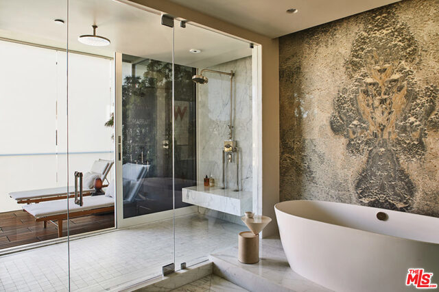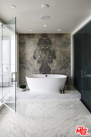 Inspired by the eminent Griffith Observatory perched atop the Hollywood Hills, this fully furnished three-bedroom, five-bathroom home offers a "retreat room," library, custom-designed closets, powder room and multiple entertainment spaces spanning across 5,078 square feet. In collaboration with top-tier luxury interior design firm, SFA Design, the penthouse features custom bespoke design aesthetics throughout the open indoor spaces, floor-to-ceiling Nano glass walls separating the interior living area from the vast 1,251 square feet of private terraces. Suffused by natural light, this penthouse features a unique, upscale industrial style with rough-hewn wood finishes, polished marble and fixtures reflecting a hand-made European craftsmanship. In addition to its spacious living quarters, The Griffith is home to Hollywood's sexiest shower, which took more than 400 hours to design, build and finish with gorgeous views of the sweeping Hollywood