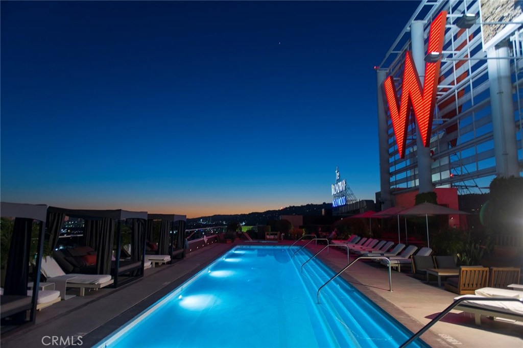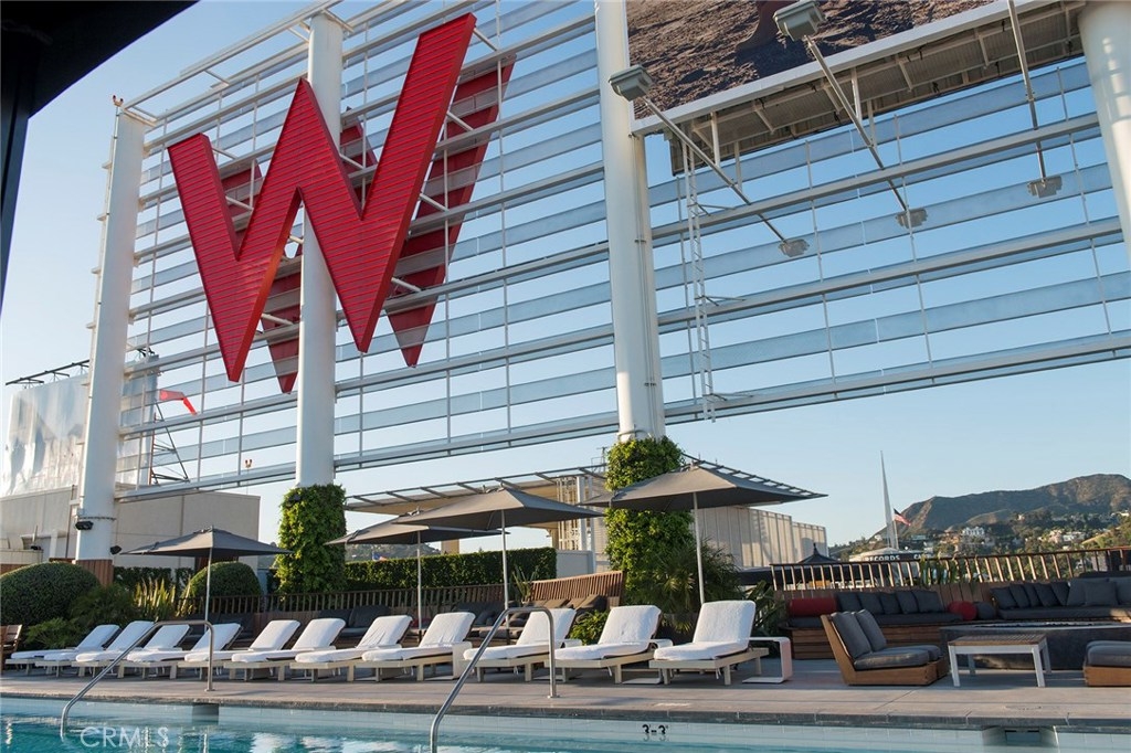 Absolutely striking PENTHOUSE unit in the famed W Hollywood Residences. Expansive two bedroom unit with a south facing 700 square foot terrace with panoramic views of Century City and west sunsets! The spectacular outdoor covered terrace runs the length of the unit and provides access from both bedroom suites. Interior features include hardwood floors and state of the art sleek kitchen with top of the line appliances! Both bedrooms boast large walk in closets and stunning private baths. Open concept "great room" with sensational views from everywhere! Two side by side parking spaces are provided. The W offers full service luxury condo living in the heart of Hollywood. Exclusive and private residential only 24 hour valet and concierge service, rooftop pool, park, fitness center, room service and much more! A very special offering!