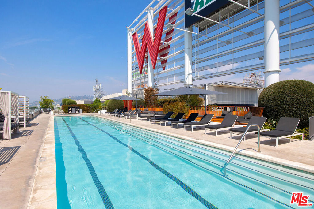Welcome to Unit 7C at 6250 Hollywood Boulevarda stylish condominium located in the iconic W Residences at Hollywood & Vine. This spacious unit features a large primary bedroom, an additional bedroom or den space, and two full bathrooms, totaling 1,270 square feet. Floor-to-ceiling windows bathe the space in natural light, while east-facing views from the private balcony showcase the cityscape, Pantages Theatre, Griffith Observatory, and lights in the hills.Inside, you'll find premium finishes throughout, including hardwood and stone-tile flooring, custom Poliform cabinetry, stone countertops, high-end stainless steel appliances, a wine fridge, refrigeration drawers, and an in-unit washer and dryer. The primary suite features a large walk-in closet and direct balcony access, making it a happening retreat in the heart of Hollywood.As part of the full-service W Residences, this unit comes with access to a wealth of luxury amenities. Residents enjoy 24-hour concierge service, security, and valet parking, as well as a dedicated resident manager. The rooftop is a true oasis, featuring a heated pool with cabanas, landscaped sun decks, BBQ areas, and a dog park. Health and wellness enthusiasts will appreciate the state-of-the-art fitness center and yoga/Pilates studio. At the same time, other lux options include a private screening room and exclusive resident access to W Hotel services such as Bliss Spa, room service, and more.Located directly above the Hollywood/Vine Metro station, the building offers unmatched access to public transit, world-class entertainment, top-tier dining, and vibrant nightlife. With two assigned parking spaces and a pet-friendly policy, Unit 7C offers the perfect blend of luxury, location, and lifestyle.