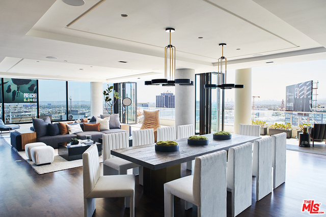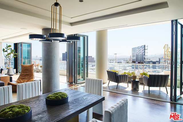 Only a few remain of these striking, top floor "Above the Penthouse" homes at The Residences at W Hollywood. This is a southwest corner penthouse labeled "The Vista" and rightly so, it has more than 4000 SF of interior with glass walls to take in the views from Downtown LA to Century City to the Hollywood Hills. Additionally, it has over 800 more footage of terrace. With a Brooklyn-esque meets roaring 20s vibe, this brand new home was inspired by its historic views of the Taft & Broadway buildings & features a bronze artisan bar with a plethora of more sophisticated details throughout. This entertainer's space with its oversized living area & automated, drop down 133" TV projector exudes luxury with design by the superb Smith-Firestone Associates. Other impressive features include a Crestron smart home system, NanaWall windows & steam showers. Experience the service, convenience & security of living at one of the most exclusive properties in Los Angeles. 4 parking. Includes Furnishings