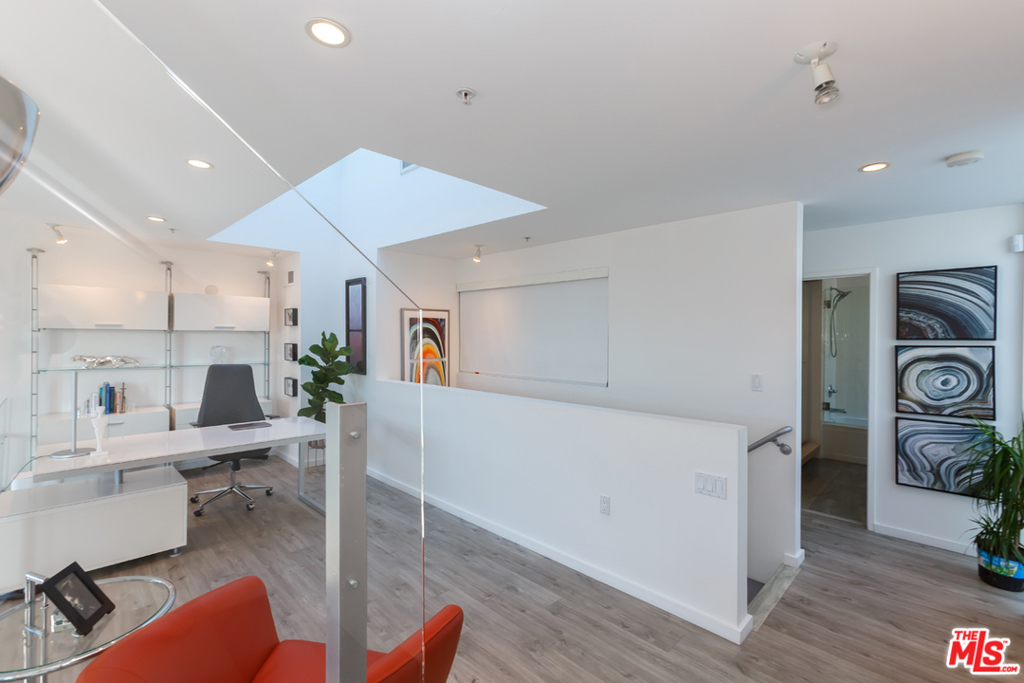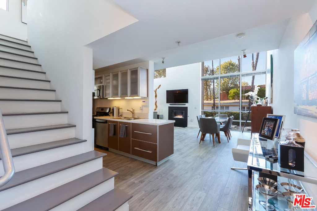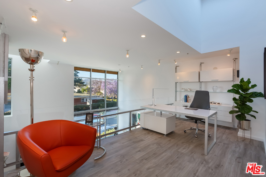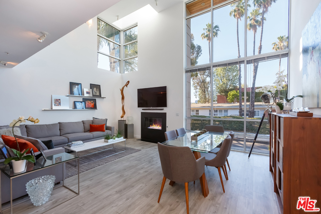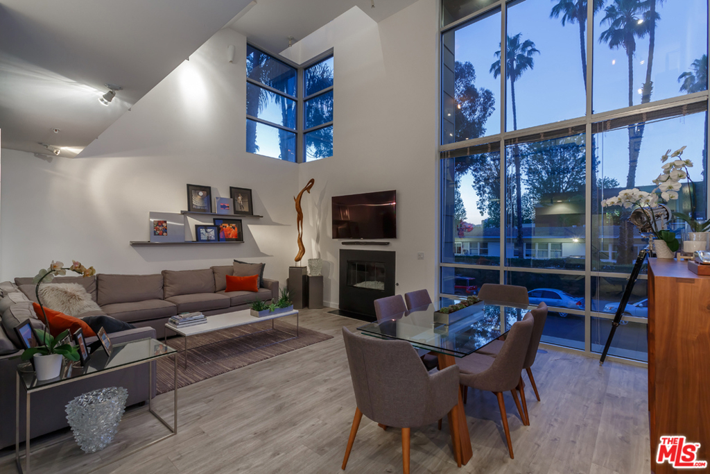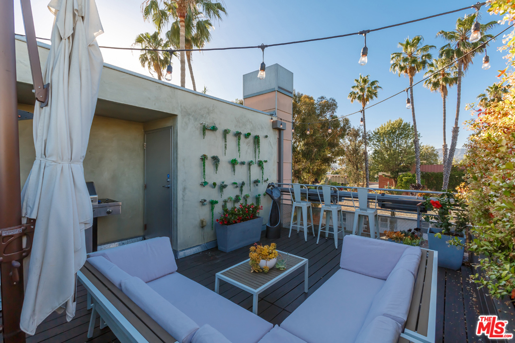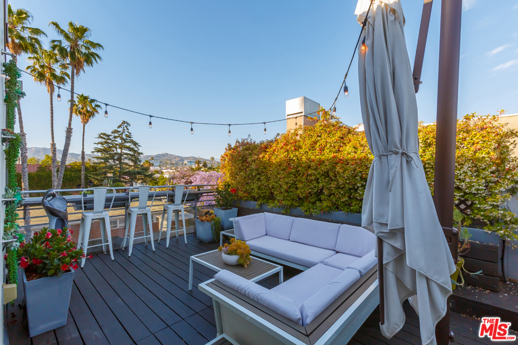 Designed by architect Jay Vanos in 2007, this beautiful 2-story architectural penthouse, which is the largest of the units in this boutique 15-unit building, has it all. This north-facing unit with only one common wall has head-on views of the Hollywood Hills. 18-foot ceilings and walls of glass grace the main level and afford an abundance of natural light. An open loft space on the second level becomes an ideal home office/library/family room. Additional features include a perfect open floor plan that allows for natural flow from the kitchen and dining areas to the grand living room with fireplace. Ideal for entertaining with a breakfast bar, the kitchen is upgraded with custom cabinetry, quartz countertops, and stainless-steel appliances. There is in unit laundry, additional storage in the garage and two parking spaces. The furnished private rooftop deck has expansive views of the city and beyond including the Hollywood sign, Griffith Park Observatory and peek-a-boo views of the lights of Downtown Los Angeles and Paramount Studios. Moments away from Larchmont Village, which boosts some of the BEST restaurants and shops in town.