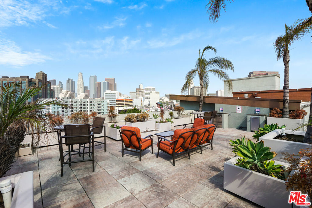 Sweet Savoy studio in a serene courtyard setting offers a well-designed open concept layout, maximizing function of space and complimented with an inviting balcony to enjoy the outdoors anytime. Top floor and east facing, this cozy end unit features a modern kitchen with stainless steel appliances, granite countertops and breakfast bar, a spacious bath with tub shower combination, a sleeping alcove with walk-in closet, a living room with sliding glass doors and an in-unit washer & dryer. Sip your morning coffee, unwind at the end of the day from your private balcony with tree top and pool courtyard views. Savoy community offers resort style amenities like landscaped courtyards, pool, spa, fitness center, business center, sports cafe, screening room, rooftop deck with skyline views, gated subterranean garage with guest parking and 24hr attended lobby. Enjoy a unique dining, entertainment and shopping experience in the burgeoning Arts District and Little Tokyo neighborhoods of DTLA. 2 deeded parking spaces are included.