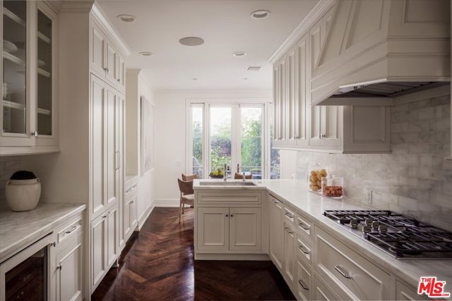 One of the premier residences in Century City's prestigious Le Parc community a beautifully updated and thoughtfully re-designed condominium offering exceptional craftsmanship, space, and privacy. This expansive 2-bedroom, 3-bath home is defined by clean architectural lines, high flat ceilings, and bespoke details throughout. Honed walnut floors run seamlessly through the main living areas, complementing the elegant custom moldings and recessed lighting found in every room. The formal living room is anchored by a fireplace with hand-carved French limestone mantle. The eat-in kitchen features marble countertops and backsplash, custom cabinetry, built-in marble topped desk, separate storage area, and direct access to the patio, creating an ideal space for everyday living and entertaining. A separate library is outfitted with built-in bookcases, offering a quiet retreat for reading or working from home. This could alternatively serve as a second bedroom with two closets and en-suite bath. The generously sized primary suite is a true sanctuary, with French doors leading to a landscaped balcony, dual walk-in closets with custom interiors, and a spacious marble-clad bath with soaking tub, dual vanities, and spa-style finishes. Additional highlights include a large in-unit storage closet, and excellent flow throughout the open-concept living and dining areas. Le Parc is a full-service, guard-gated community in the heart of Century City, offering resort-style amenities including two pools and spas, tennis courts, gym, and a clubhouse all just minutes from Beverly Hills, Westwood, and world-class dining and shopping.