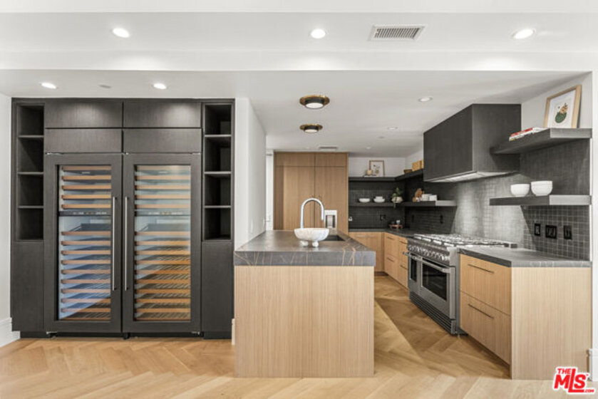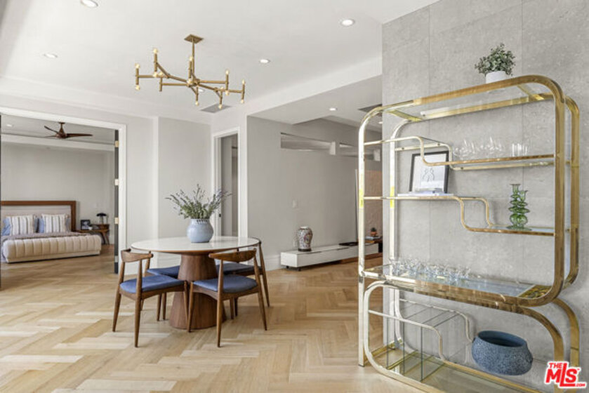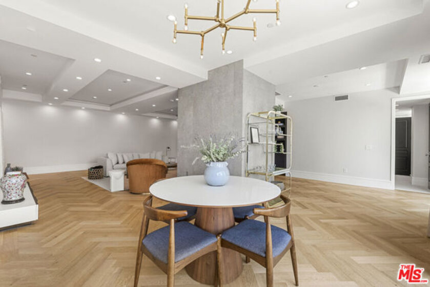 Welcome to Wilshire Terrace. As the very first residential tower constructed on the Wilshire Corridor, this property is a classic example of mid-century 1950s architecture. Built with robust concrete and steel, it features high ceilings and generous floor plans that balance iconic original design with modern conveniences. The porte-cochre, lobby, elevators, and common areas have all been thoughtfully and fully restored, all set within a beautiful and well-maintained two-acre private estate. Amenities include a wonderful pool and jacuzzi spa, a well-equipped fitness center, hair salon, updated common spaces throughout, and a 24-hour valet service along with full-time doorman. The building is also pet-friendly, welcoming residents and their four-legged companions.Apartment 2F has been fully and tastefully renovated, offering over 2,400 square feet with three spacious bedrooms, each with an en-suite bathroom, plus an additional powder room. The primary suite features a large walk-in closet, soaking tub, and dual-sink natural quartzite and natural wood vanity.High-end appliances and finishes include a Gaggenau refrigerator/freezer, two Sub-Zero wine refrigerators, dual dishwashers, premium range, Duravit toilets, Graff fixtures, custom cabinetry, European oak flooring in the main living areas and primary bedroom, and wool carpets in the secondary bedrooms. Facing due south, the residence receives ample natural light throughout the year and overlooks the pool and surrounding grounds. Residents benefit from Wilshire Terrace's full-service amenities, including utilities, high-speed internet, cable, and security. The apartment also comes with two, non-tandem fully secure parking spaces and a separate, generously-sized storage unit. Conveniently situated, the property is literally minutes from Beverly Hills, Century City, and UCLA, with Holmby Park just a ten-minute stroll away.