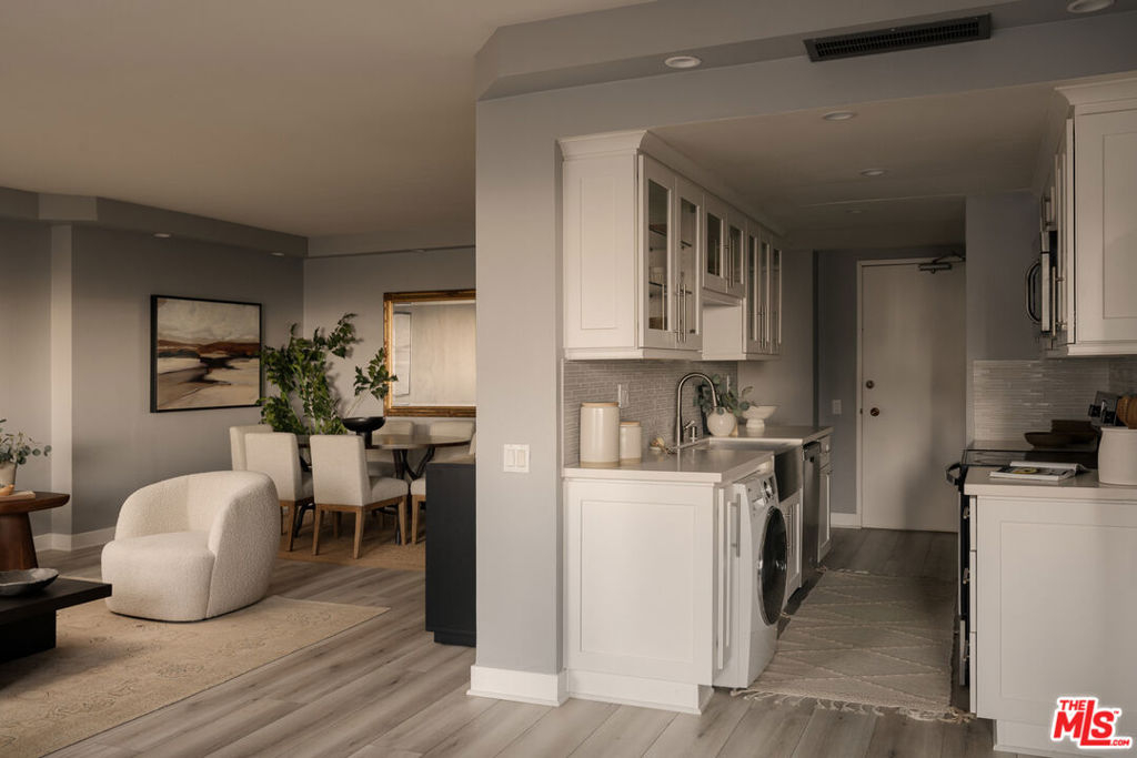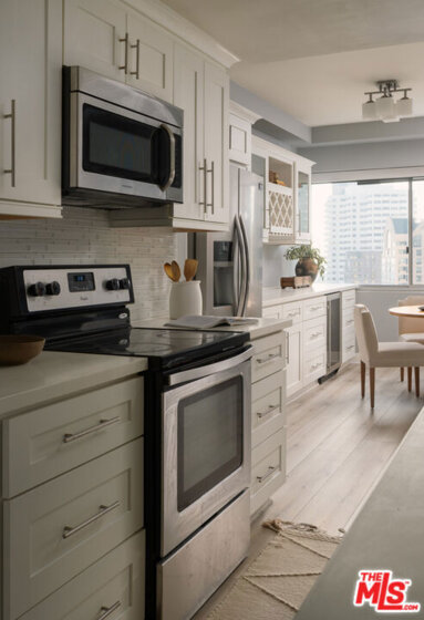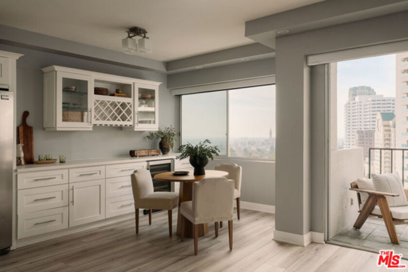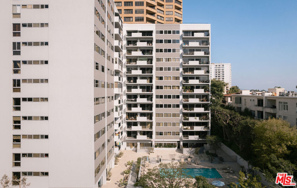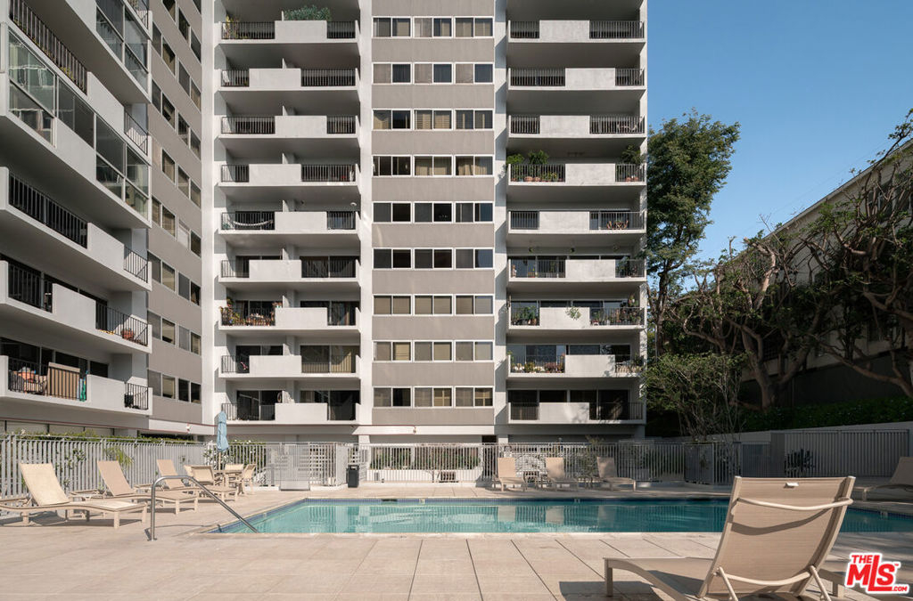Welcome to The Churchill, a full-service Mid-Century building on the Wilshire Corridor, where this expansive 12th-floor residence enjoys sweeping southwest views and a tranquil rear location. Wake up to remarkable vistas stretching toward the ocean or enjoy dinner on your balcony as the sun sets over the Corridor. This completely remodeled home features one bedroom, one bathroom, and an open-plan living and dining area. The updated and expanded cook's kitchen includes Caesarstone counters, stainless-steel appliances, in-unit laundry, and additional cabinetry with a wine refrigerator, all opening to a sitting area, dining space, and the main living room. The oversized bedroom offers abundant space for both a desk and a sitting area. The Churchill is a pet-friendly building, welcoming cats and small dogs. Amenities include 24-hour security, valet parking, a fitness center, sauna, recreation room, extra storage, and one of the best pools on the Corridor. HOA dues are $1,281 per month and include all utilities, cable, and building amenities. Centrally located near UCLA and Westwood Village.