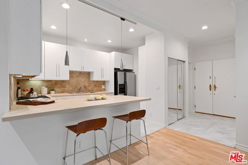 This condo has the trifecta - size, layout, and location! With over 1250 square feet, loads of natural light, high ceilings, and a terrific floor plan, this private rear-facing unit feels so bright throughout. Its 2 bedrooms and 2.5 baths are tucked away in the Olympic/Robertson neighborhood, within walking distance to shops, restaurants, houses of worship, and several leafy parks. Head through the double-door entry into a substantial foyer with powder room and coat closet. From there, you'll find a great room with fireplace, lush greenery views, recessed lighting, side-by-side washer and dryer, and an ample kitchen with breakfast bar. Both bedrooms are well-sized and both have en suite bathrooms! The primary also has a separate tub and shower, as well as a walk-in closet. All bathrooms have been recently refreshed. Central heat/AC. This controlled access building has a well-kept lobby, elevator, and parking for your guests. All with low HOA dues. And it's about to get better this condo is only a few minute walk from the upcoming Purple subway extension, opening in 2025. This rare property will not last long. Come take a look before it's gone.