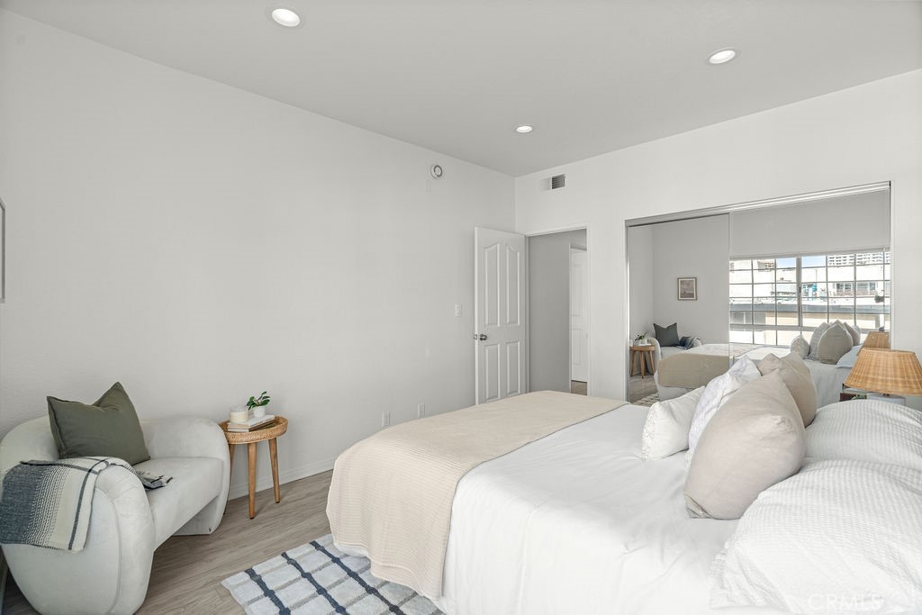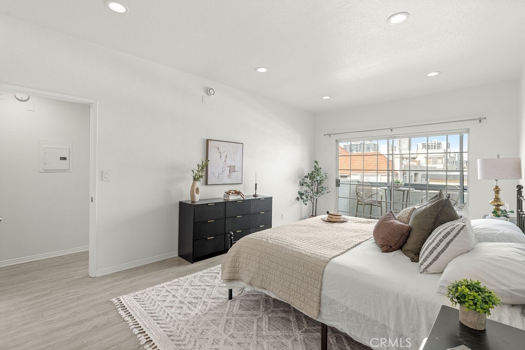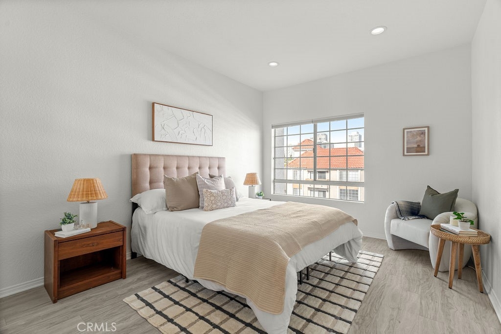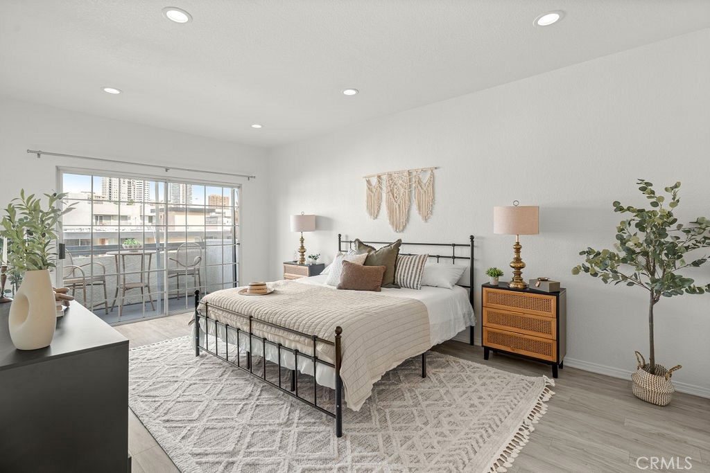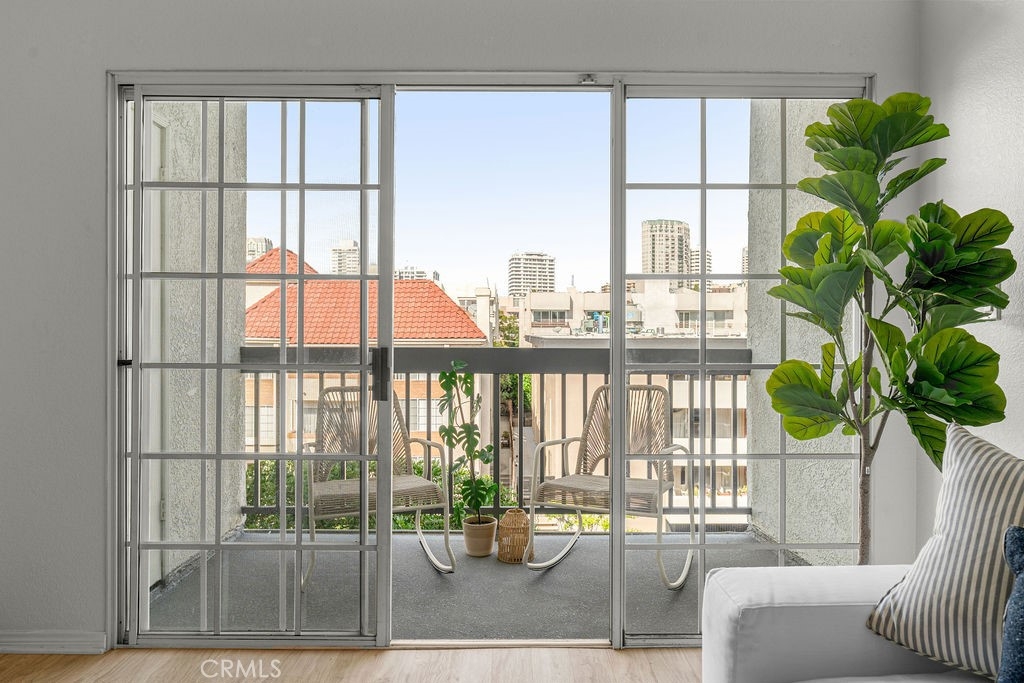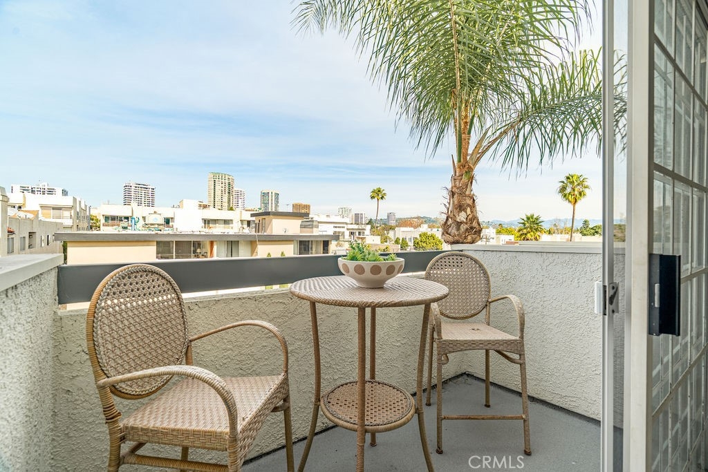 Beautiful front-facing residence on a quiet, tree-lined street north of Santa Monica Boulevard in the heart of Westwood. Filled with natural light and enhanced by high ceilings, this well-designed home offers an open floor plan ideal for both everyday living and entertaining. The spacious living room features a fireplace and flows seamlessly into the dining area with built-in bar, opening to a private balcony with serene neighborhood views. The kitchen is thoughtfully appointed with ample cabinetry, quartz countertops, and stainless steel appliances. The generous primary suite includes a walk-in closet, balcony access, and a spacious ensuite bath with dual vanities, separate tub, and shower. A well-sized second bedroom and updated hall bath provide flexibility for guests, home office, or additional living space. In-unit laundry completes the home. The secure building offers controlled access, elevator, pool, spa, additional storage, and gated tandem parking. HOA dues include earthquake insurance. Ideally located moments from UCLA, Westwood Village, Century City, and Westfield shopping and dining.
