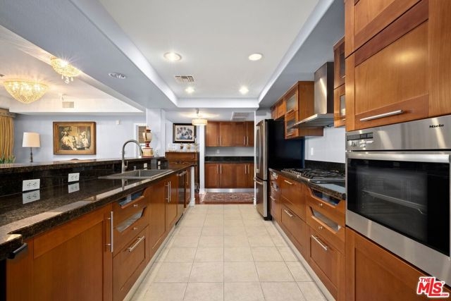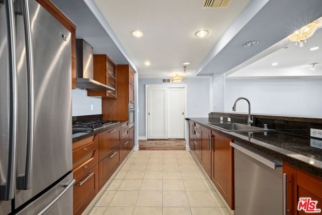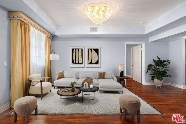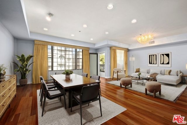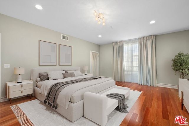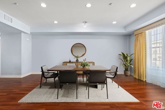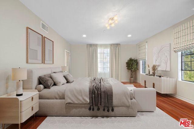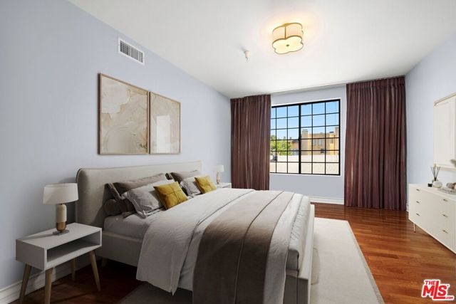 A rare opportunity to own in a luxury building adjacent to Beverly Hills. This 2-bedroom, 2.5-bath corner unit is private, bright and spacious with an open floor plan, hardwood flooring throughout and a chef's kitchen equipped with top-of-the-line Miele appliances and a bar top that seats three. Both bedrooms are en-suite with walk-in closets. Enjoy the comfort and convenience of an in-unit washer and dryer, a private patio, and two assigned parking spaces. This secure building offers amenities, including a stylish lobby, controlled access, a recreation room, BBQ area, and low HOA dues. Located just blocks from the finest shopping, dining, Hospital and entertainment that Los Angeles has to offer. This home combines upscale living with unbeatable convenience. Some photos have been virtually staged.