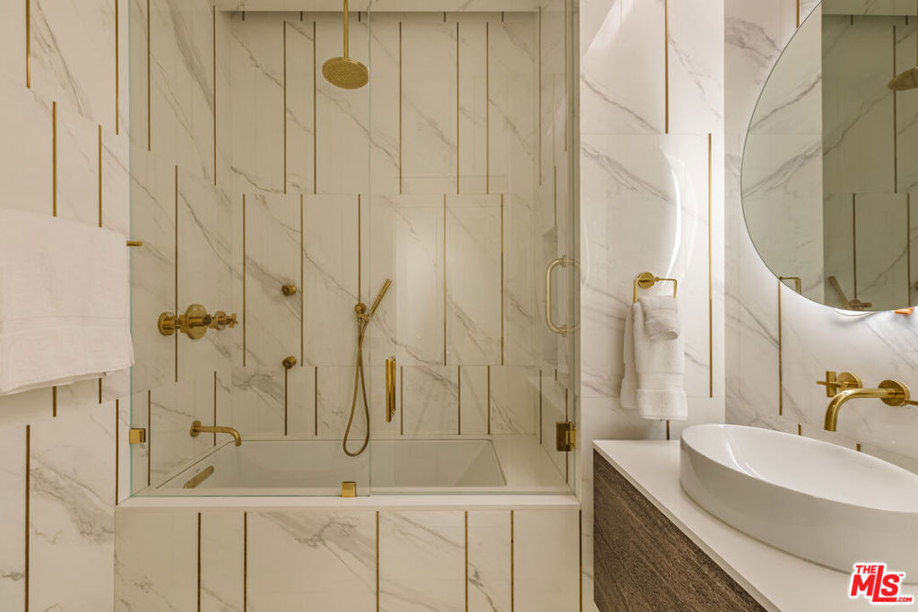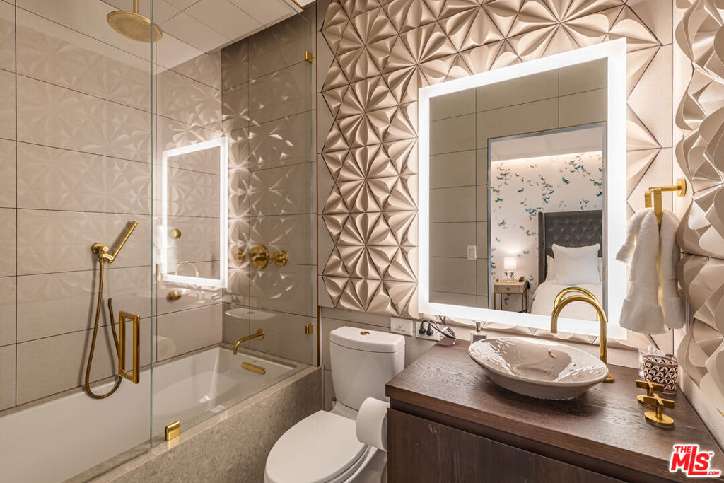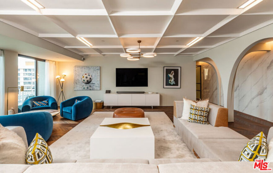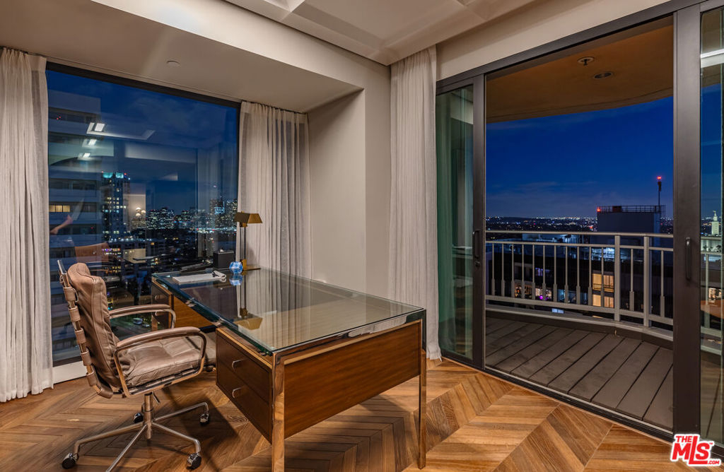 Turnkey Designer Furnished Condominium. Nestled within the distinguished Remington Private Residence Tower in Westwood and following a three-year gut renovation, this exquisitely designed 3/4 bedroom, 3.5 bathroom condominium is a masterclass in modern luxury and timeless sophistication in pristine move-in condition. Complete furnishings available for purchase, including custom-made furniture, designer lighting and chandeliers, custom rugs, Frette linens, comprehensive AV system, window coverings, extensive kitchen cookware, appliances and flatware. Encompassing 3,283 square feet, the home welcomes you from your Private Elevator directly into your gracious formal foyer, unfolding into a sun-drenched, open-concept living space framed by floor-to-ceiling windows and an extensive terrace that captures breathtaking panoramas of the city skyline. The interiors unfold with an artful balance of drama and refinement. Rich chevron-patterned hardwood floors and custom coffered ceilings guide you to the striking black marble gourmet kitchen, where bold design meets everyday functionality. State-of-the-art Miele appliances, a walk-in pantry, and a custom breakfast nook create an inviting space that transitions effortlessly from quiet morning rituals to vibrant gatherings. The adjacent office/den/4th bedroom outfitted with bespoke cabinetry and sliding glass doors, doubles as a versatile sanctuary with access to a private terrace. A dedicated laundry room and extensive storage add convenience. A marble-clad hallway leads to a serene guest suite, designed with privacy and comfort in mind. On the opposite wing, the primary suite defines luxury living. An entryway lined with mirrored panels sets the tone, while recessed and paneled custom ceilings and expansive windows frame the glittering cityscape. The suite extends to a private terrace, a tranquil haven from which to savor the views. The ensuite bathroom is a spa-like retreat, featuring a stone-clad walk-in shower, a deep soaking tub, a private infrared sauna, and a custom dressing room that rivals the most elegant ateliers. An additional ensuite guest suite and formal powder room complete the home. Throughout, thoughtful design details -architectural arches, custom contemporary finishes, and discreet hidden storage - imbue the residence with an air of bespoke sophistication, where every inch has been meticulously curated. Modern conveniences such as a Crestron smart-home system, automated shades, and custom lighting ensure effortless living, seamlessly blending luxury and technology. As part of the two dedicated parking spaces, a coveted submeter purchased for a private EV charger. Additional separate storage room and wine locker are included. More than a residence, this exceptional offering sets a new standard for vertical living in Los Angeles' most coveted address- a harmonious fusion of artistry, design, and comfort. Residents of The Remington enjoy unparalleled amenities synonymous with elevated living: 24-hour valet parking, a stately library and fireside lounge, a grand banquet hall, an outdoor pool, a state-of-the-art fitness center, and expansive alfresco dining areas complete with a cozy outdoor fireplace.