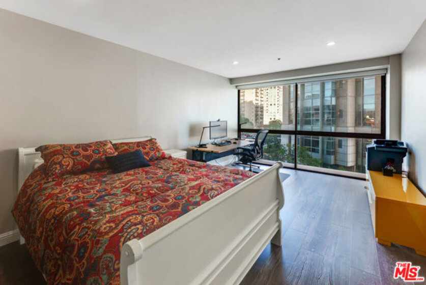 Welcome to the Longford Residence, a full-service building located on the prestigious Wilshire Corridor. Upon entry, floor-to-ceiling windows fill the home with natural light and showcase east-to-south facing city views. The thoughtfully designed floor plan offers ideal privacy, with the primary suite positioned on one side of the residence and a secondary bedroom on the other. Automatic blinds allow for effortless control of light and privacy throughout the day. The AC unit is newer, while in-unit laundry and a generous walk-in closet in the primary provide both comfort and functionality. Residents enjoy a true luxury lifestyle with access to valet service, a fitness center, sauna, spa, pool, and recreation room. All just minutes from LA's top dining and shopping, UCLA, and convenient freeway access placing the city at your doorstep without sacrificing comfort or ease.