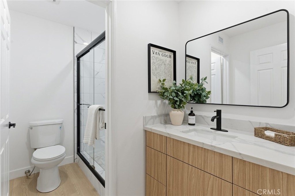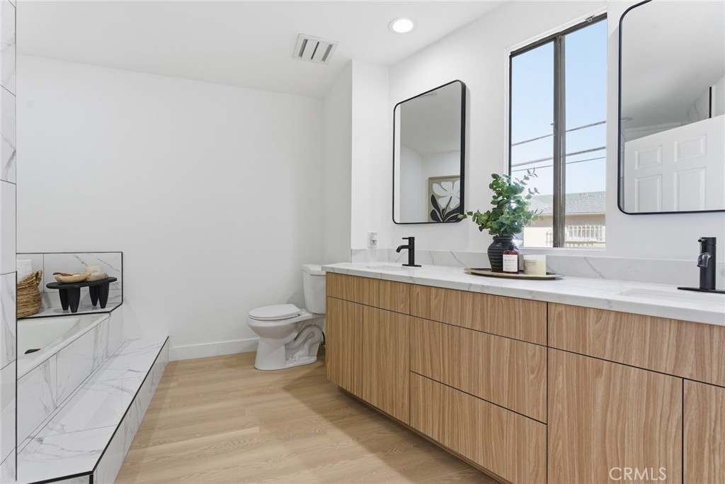 Sophisticated design and effortless comfort converge in this impeccable, newly remodeled 2-bedroom, 2-bathroom condo in the heart of Westwood. Flooded with natural light, this expansive condo boasts soaring ceilings, wide-open living spaces, and sleek modern finishes that exude understated elegance. A grand living and dining room are designed for both intimate gatherings and stylish entertaining. Floor-to-ceiling windows frame the residence in light, enhancing the sense of scale and openness throughout. The chef-inspired kitchen showcases brand new appliances, custom cabinetry and countertops. The luxurious primary suite is a private sanctuary, featuring a spa-like en-suite bath and a private balcony to enjoy your morning coffee or evening glass of wine. The generously sized second bedroom offers versatility for guests or a refined home office. Additional upgrades include brand new A/C condenser (installed Nov 2025, new flooring, fresh paint throughout, new light fixtures, new bathroom cabinets and tile, in-unit laundry room with additional storage. Building amenities include secured entry, 2 side-by-side parking spaces, on site guest parking, storage unit, and EV charger. A true turnkey retreat in a boutique building of only 15 units. This rare Westwood find is perfectly situated minutes from world-class dining, high-end shopping, Westwood Village, UCLA and Beverly Hills.
