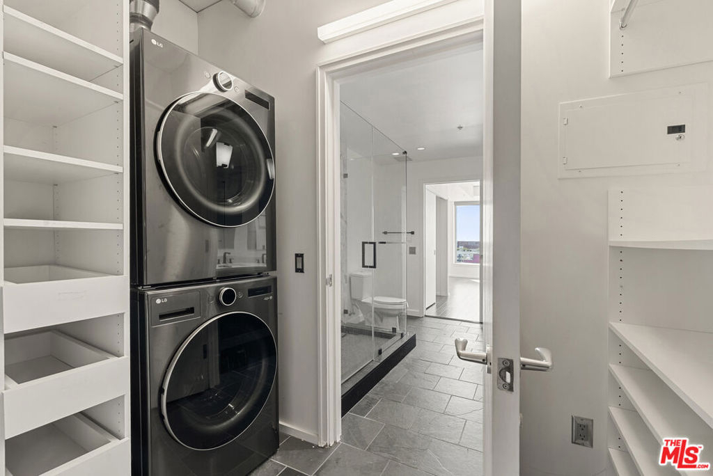 Best priced unit in The Evo, among the lowest price per square foot options in DTLA. OVERSIZED 1-BR with second half bath for guests. Located on the 11th floor with unobstructed sweeping city and sunset views. 2 parking spaces with EV charging. Abundant custom storage with 3 closets, a walk-in pantry, and a large laundry room with a new washer & dryer and custom shelving. Floor to ceiling windows with motorized shades, spa like primary bathroom, near elevator for privacy and convenience. Evo amenities include 24/7 security, fitness center, resort-style pool & spa, lounge areas with grills & TVS. Newly remodeled lobby and professional management. Location: SOUTH PARK DTLA -the safest, cleanest, and most walkable part of downtown steps to Whole Foods, L.A. Live, Crypto Arena, dining & nightlife. NEIGHBORHOOD IS MONITORED PATROLLED AND KEPT CLEAN DAILY BY AMBASSADORS OF THE SOUTH PARK BID PROGRAM.