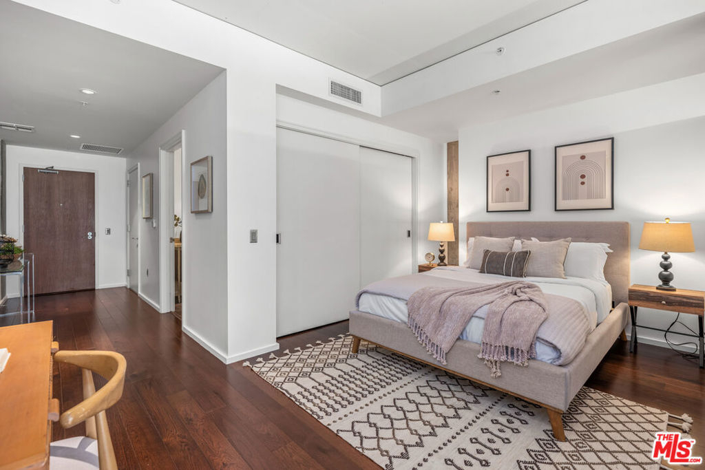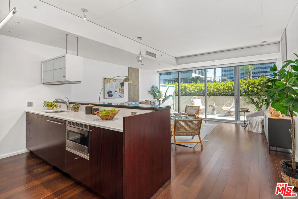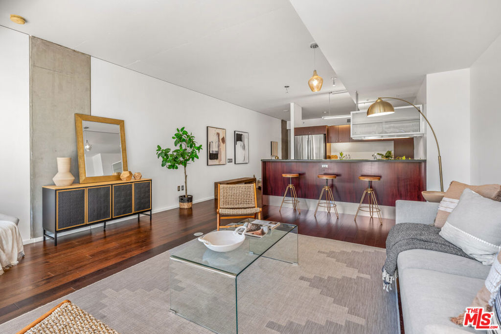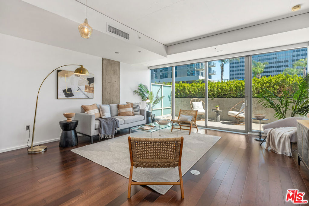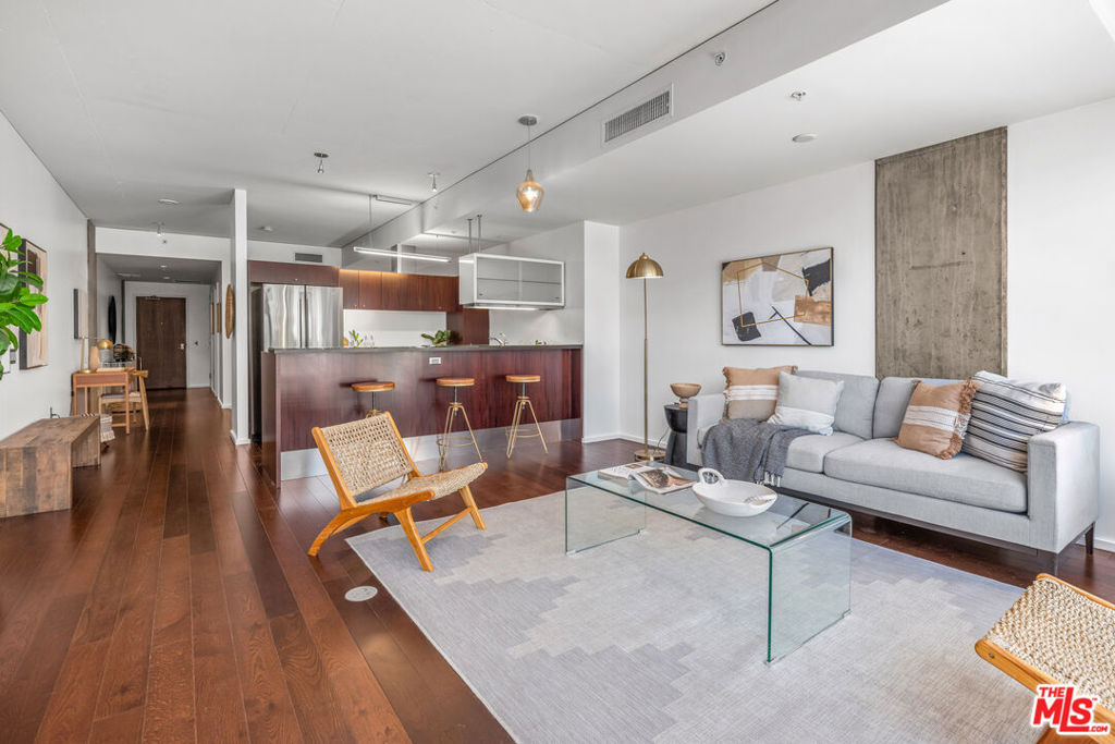 Experience modern luxury at The Evo, featuring contemporary architecture, resort-style amenities, rooftop retreats, impeccably designed interiors, and a prime location just minutes from everything Downtown Los Angeles has to offer. Unit #609 welcomes you with an expansive living room and an open floor plan that maximizes space. This residence includes an entertainer's kitchen, an open bedroom, a spa-inspired bath, a laundry room, and elegant wood floors. Enjoy outdoor living with a private patio, perfect for relaxing or entertaining. Additional amenities include the 240 Lounge, a state-of-the-art fitness center, and a sixth-floor pool deck.