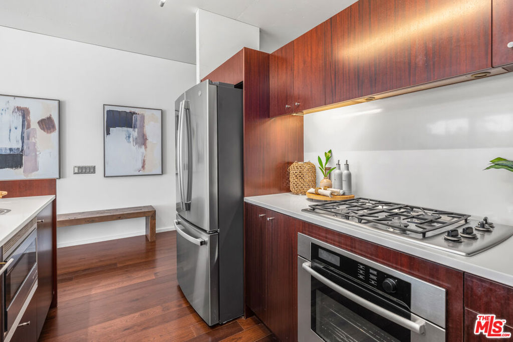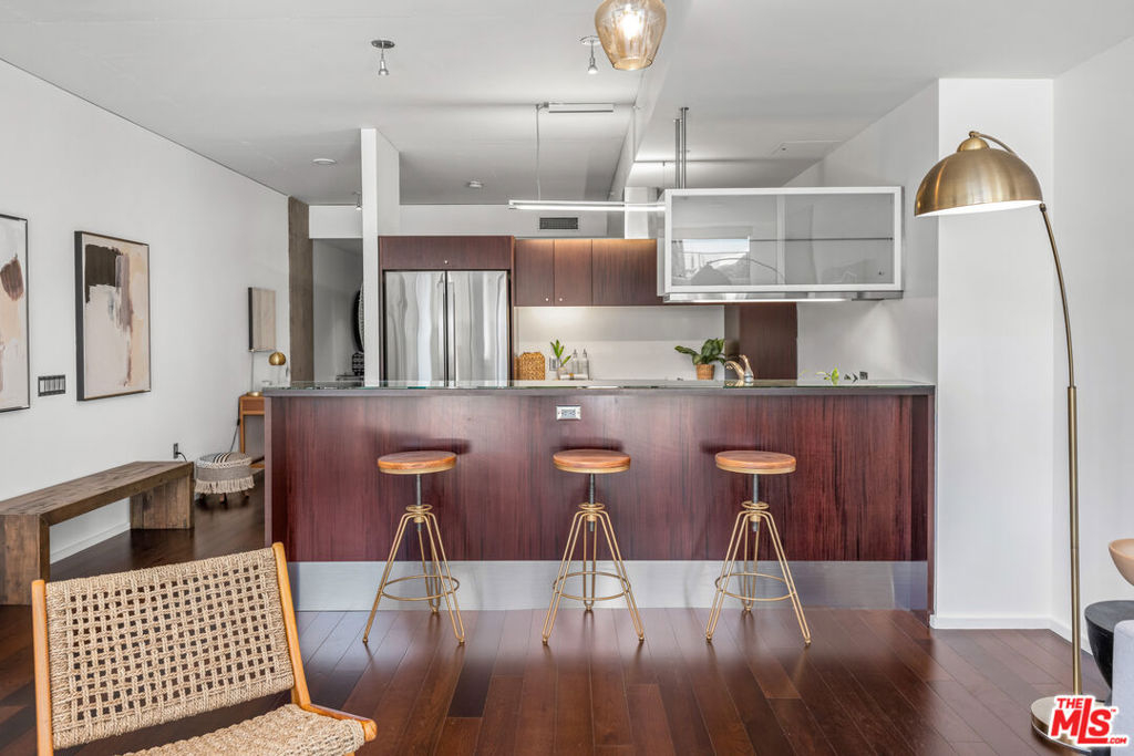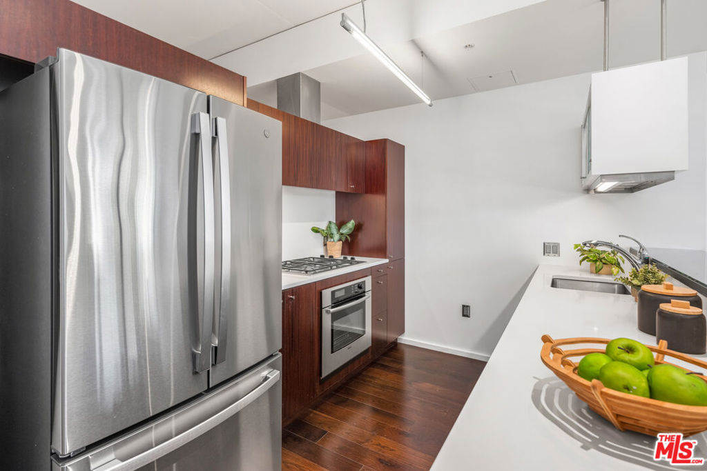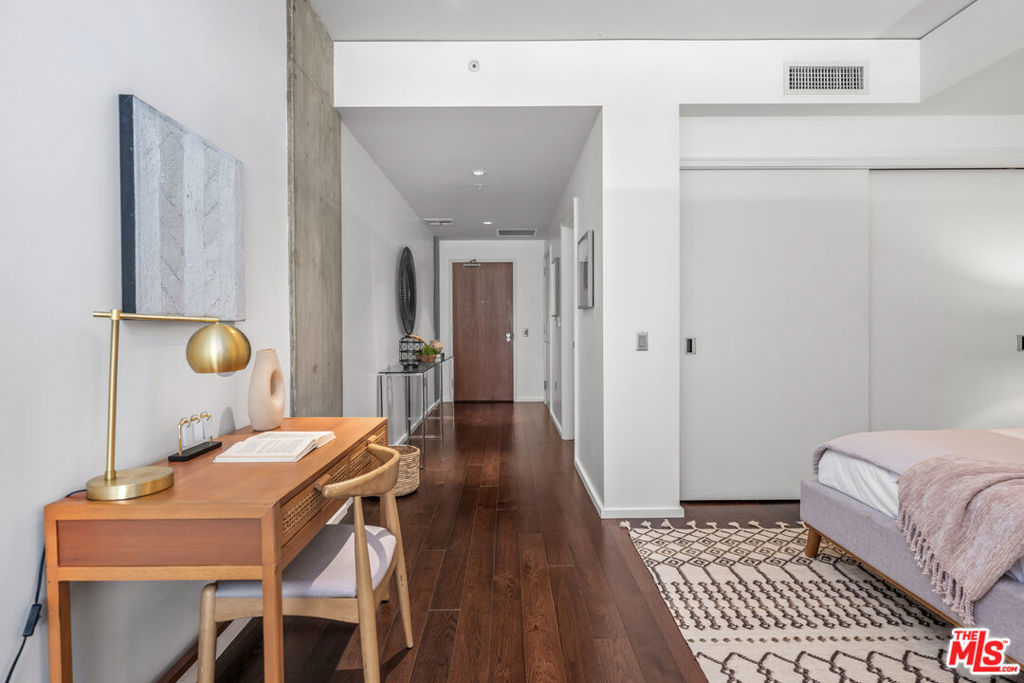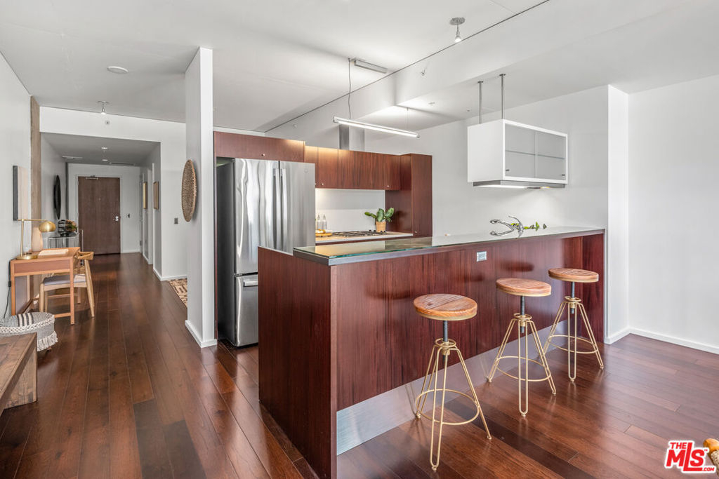 Experience modern luxury at The Evo, featuring contemporary architecture, resort-style amenities, rooftop retreats, impeccably designed interiors, and a prime location just minutes from everything Downtown Los Angeles has to offer. Unit #609 welcomes you with an expansive living room and an open floor plan that maximizes space. This residence includes an entertainer's kitchen, an open bedroom, a spa-inspired bath, a laundry room, and elegant wood floors. Enjoy outdoor living with a private patio, perfect for relaxing or entertaining. Additional amenities include the 240 Lounge, a state-of-the-art fitness center, and a sixth-floor pool deck.