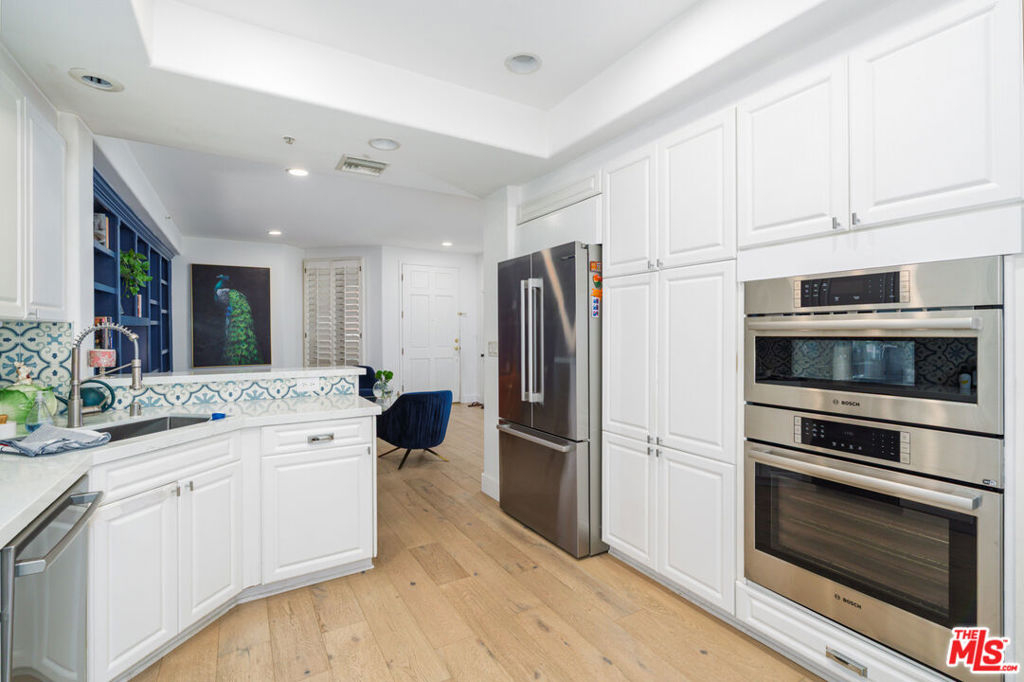 Stunning Brentwood Condo- Modern Elegance in Prime Location! Experience refined living in this beautifully updated 1,875 sq ft, 2-bedroom, 2-bath residence at the prestigious Beverly Court. Freshly installed new engineered hardwood flooring flows throughout, creating a warm and inviting ambiance. The fully updated kitchen features sleek stainless steel appliances and quartz countertops. Both bathrooms have been exquisitely renovated with modern fixtures, designer tiles, and spa-like finishes. Relax by the updated fireplace mantle, a focal point in the expansive living area, or entertain at the stylish custom-built bar, ideal for gatherings. Additional highlights include recessed lighting, generous closet space with built-in organizers, and in-unit laundry. Residents enjoy a gated parking garage with two reserved spaces, plus access to a community pool and serene courtyard. Located just one block from vibrant Brentwood Village, with its premier dining, boutiques, and cafes, and minutes from UCLA, the Getty Center, and West LA's finest attractions. This move-in-ready gem offers a rare blend of modern upgrades and an unbeatable location don't miss this Brentwood treasure!