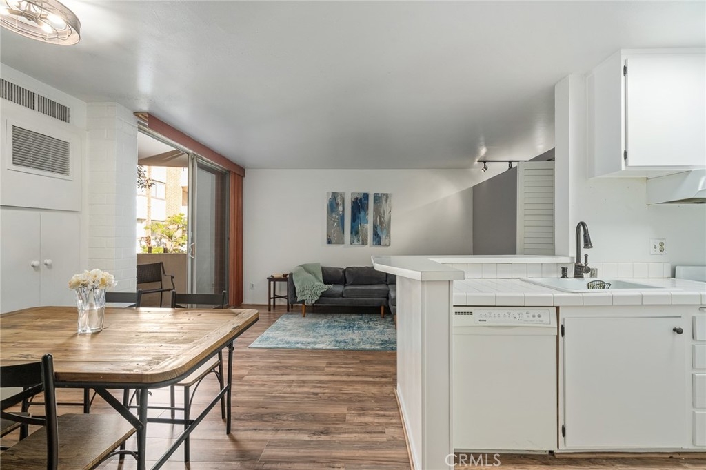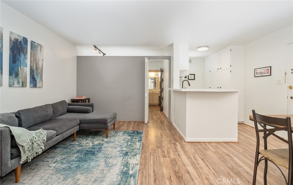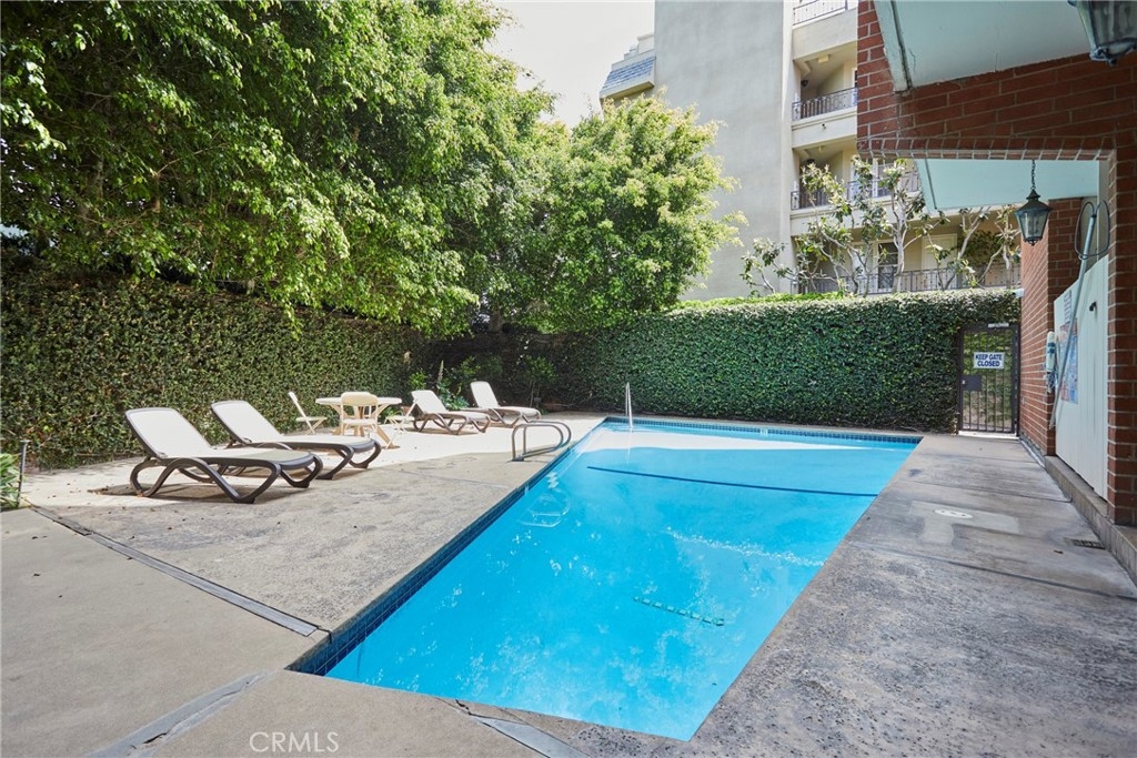 Newly refreshed white kitchen cabinets! Welcome to one of the best deals in Brentwood! This light & bright updated one bedroom condo is located in the heart of Brentwood, just a block from Brentwood Village. The condo features a lovely open floorplan with the kitchen open to the dining and living areas. The second-floor location offers nice security and convenience for anyone who loves to start their day with coffee and fresh air on their own patio. The condo faces the interior courtyard, so it maintains its security within this gated building. The building is well maintained and includes a sunny pool area, gym, sauna, meeting room, cool roof top deck and modern lobby. Stroll to the Village and enjoy restaurants, parks and the Sunday Farmer’s Market. Other features include AC, two assigned garage parking spots, guest parking, a secure building and ideal location for commuting.