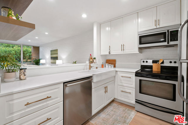 Enjoy the quality upgrades, just completed, in this move in ready 1 bedroom, 1 bathroom condo at Sunset Terrace. Amenities in this secure building include a modern gym, rooftop patio, heated pool, sauna, community laundry, clubhouse and guest parking. #302 has 2 carparks in tandem in the gated parking garage, a large balcony, new flooring, new countertops with dual sinks and vanities in the bathroom, recessed lighting and much more. Located close to Brentwood Village, enjoy all the Westside has to offer. Looking for back up offer.