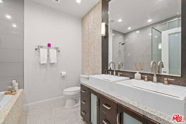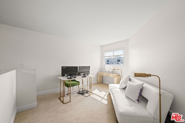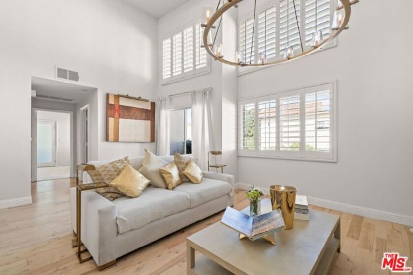 The Premier unit in the building! This rare, stylish & updated TOP FLOOR, Front facing, corner, light, bright & airy Penthouse features 2 bds + Loft + 2 full baths. Dramatic open floor plan with soaring 18-foot ceilings in the living room & dining room & 3 separate balconies! Lovely light hardwood floors, expansive windows, and spiral staircase leading to Loft which is perfect for a home office or gym. Modern kitchen has stainless steel appls, including a Viking Range, built-in refrigerator, and Bosche dishwasher & glass front cabinetry. The Primary Suite has spectacular floor to ceiling palladium windows & blackout curtains, walk-in closet & second closet, an en suite spa-like bathroom w/ separate spa tub & shower w/ 6-head shower & double vanity. Brand New central Heat & A/C unit, Brand New Water Heater, Newly installed Nest thermostat and alarm system, plus inside laundry. Situated in highly desirable Brentwood near top restaurants, trendy boutiques, grocery stores & coffee shops.