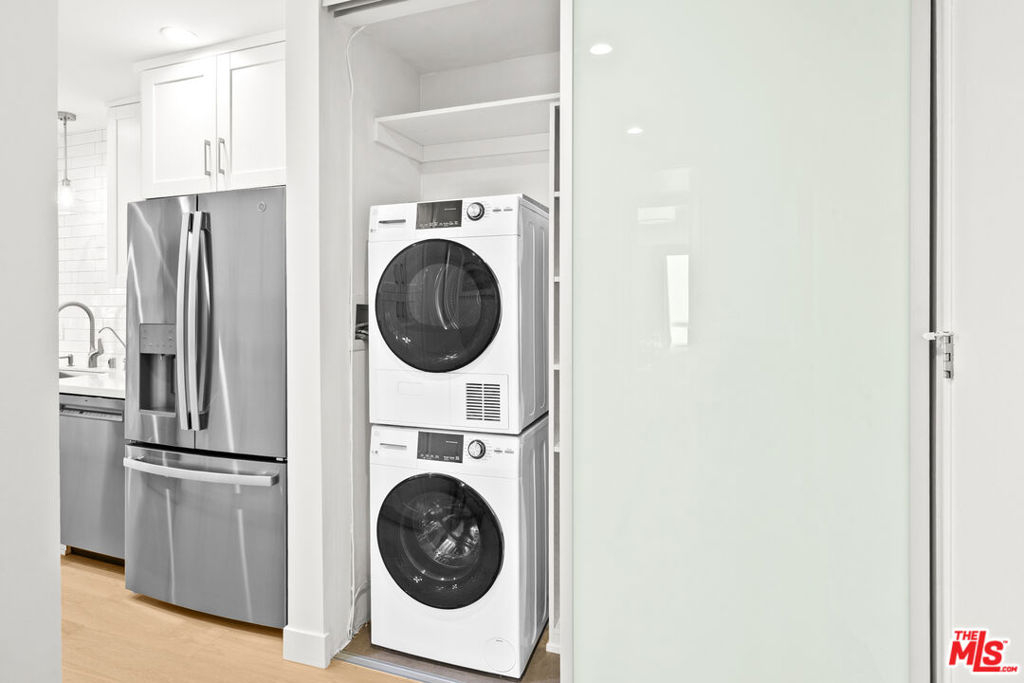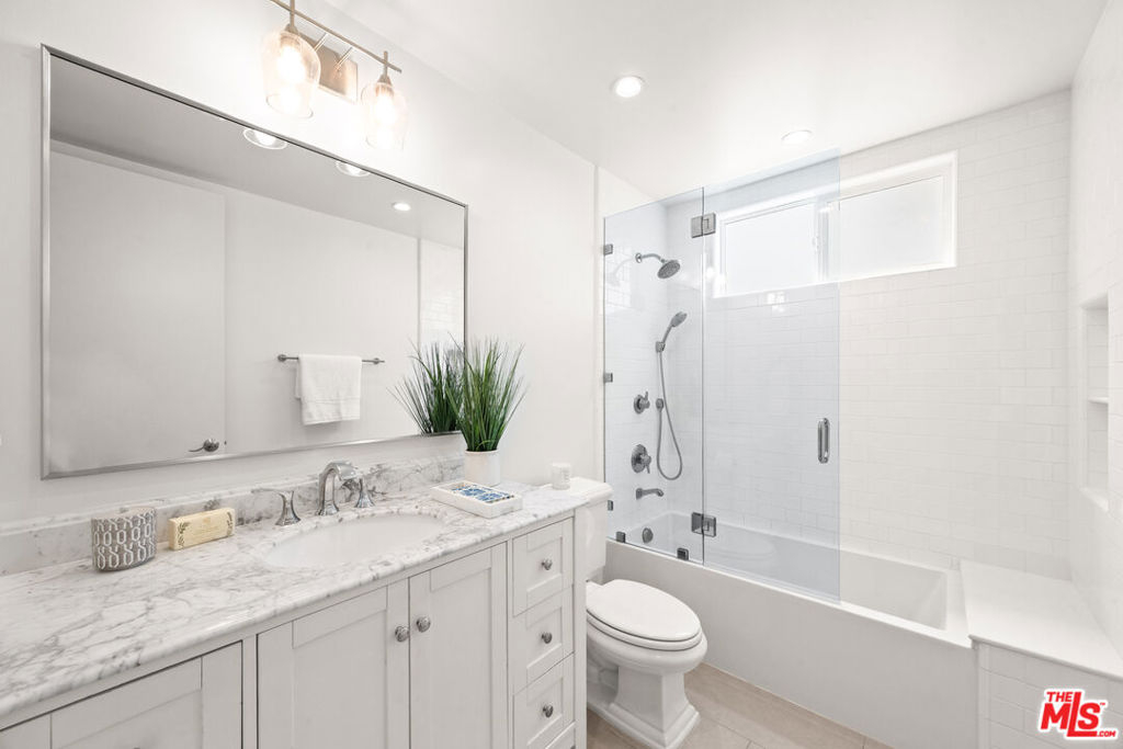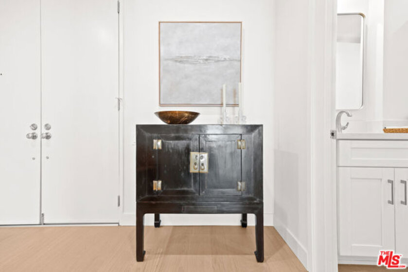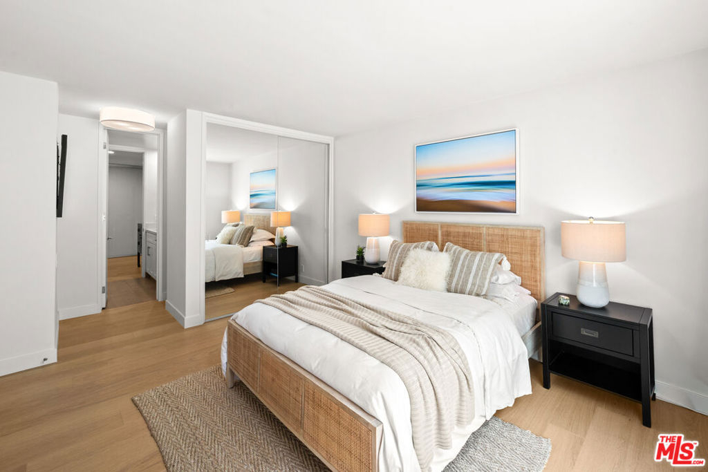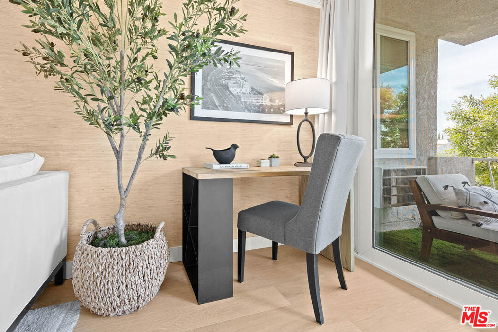 Welcome to 11918 Kiowa #201, a beautifully updated, front-facing residence offering refined luxury and effortless sophistication in the heart of Brentwood. Surrounded by tranquil, tree-lined vistas and blooming jacarandas, this elegant 2-bedroom, 2-bath condominium blends serenity with vibrant city living. Bathed in natural light, the open-concept floor plan is framed by floor-to-ceiling double-pane windows and enhanced by newly installed wood flooring, creating a seamless indoor-outdoor experience. The spacious living area opens to an oversized private balcony, offering a peaceful outdoor setting ideal for morning coffee, unwinding in the evening, or enjoying quiet moments throughout the day. The designer kitchen features custom white cabinetry, pull-out storage, quartz countertops, custom lighting, and new stainless-steel appliances, flowing into a generous dining area ideal for both intimate dinners and effortless entertaining. The primary suite offers a calming, elevated ambiance with views of surrounding treetops and overlooks the inviting private balcony, complemented by a walk-in closet and a spa-inspired bath with soaking tub and shower. The secondary bedroom is thoughtfully positioned for privacy and features generous closet space, along with a beautifully updated en-suite bathroom with refined finishes, creating a welcoming retreat for guests or a sophisticated home office. Additional features include in-unit laundry, a formal double-door entry, two side-by-side parking spaces, and abundant storage. Residents enjoy a well-maintained building with controlled access, elevator service, a renovated lobby and recreation room, secure garage parking, lush landscaping, and earthquake insurance. Perfectly situated with a Walk Score of 88, just moments from Brentwood's premier dining, boutiques, and everyday conveniences along Wilshire and San Vicente, this home offers an exceptional blend of comfort, style, and location.