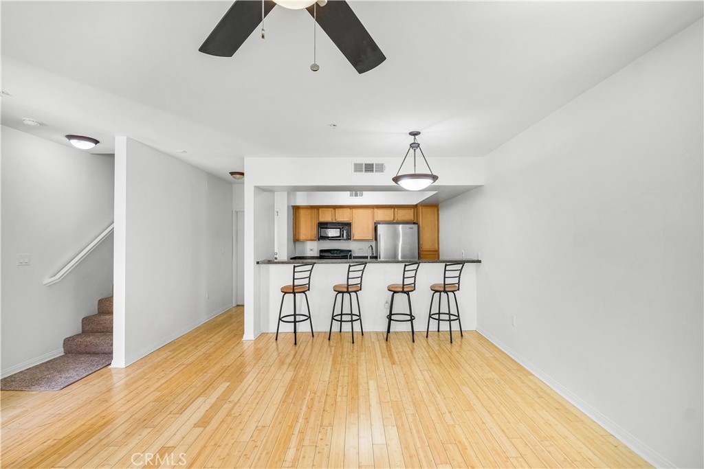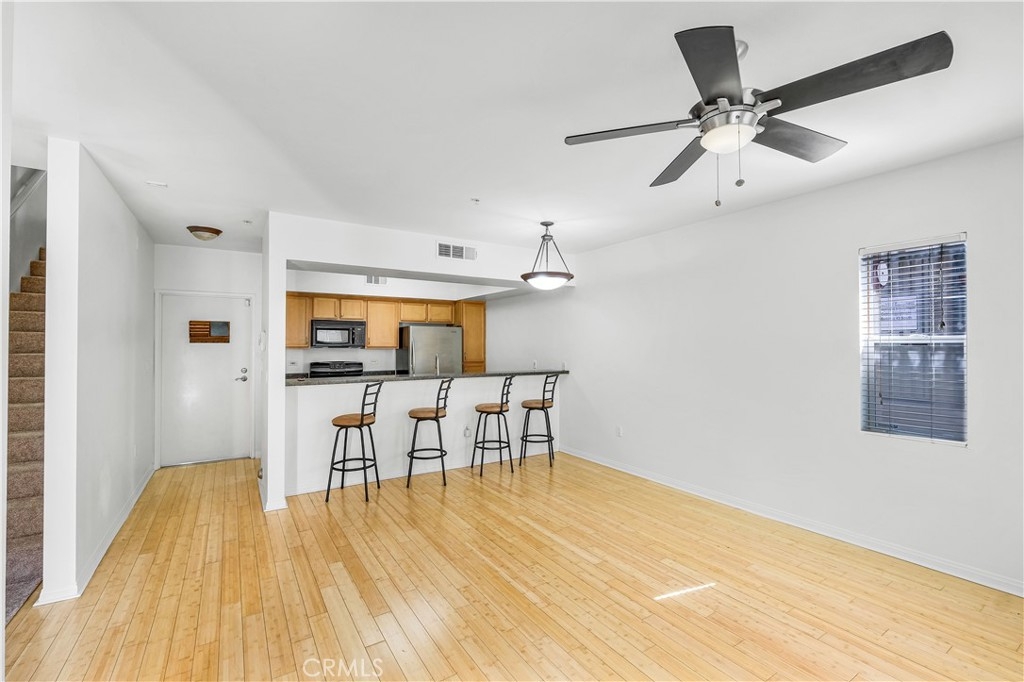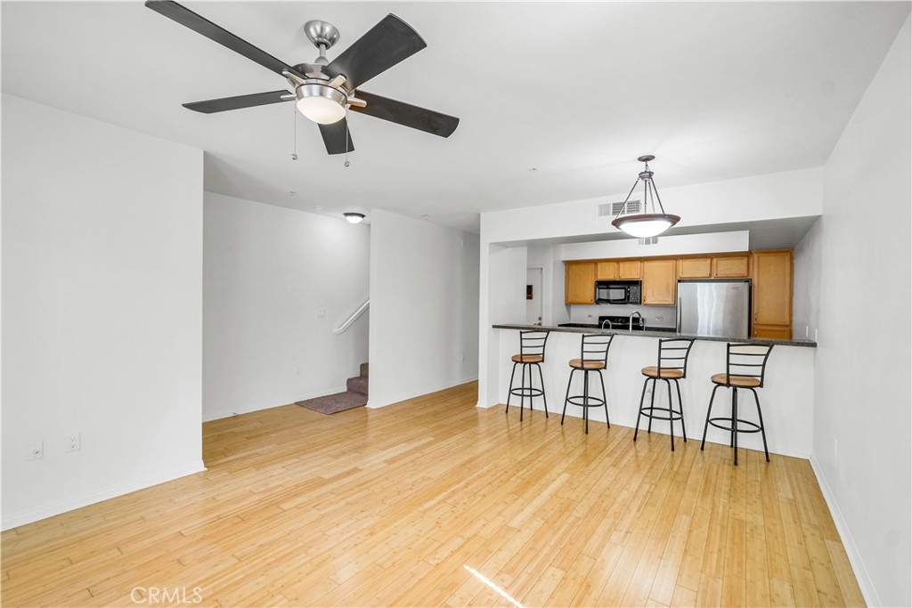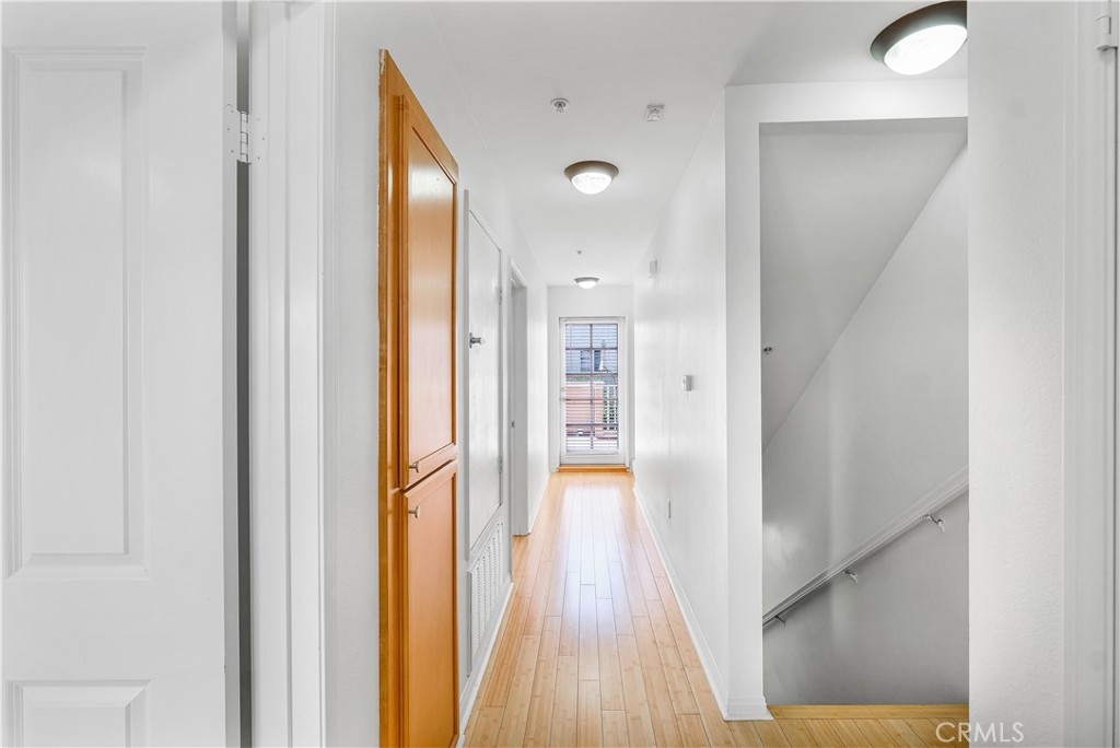 Lovely townhouse with 3 bedrooms and 2 full baths in serene Gated Community in Los Angeles. As soon as you walk into the home, you are greeted with an open floor plan from the Living room to the Kitchen. Easy maintenance Bamboo flooring for all living areas. A lot of cabinet space in the Kitchen with a Breakfast Bar. New carpet for the stairways. A Huge Balcony on the 2nd floor — great for entertaining or relaxing after a long day. 2 Spacious bedrooms on the 2nd floor with a full bathroom. The 3rd floor presents a big Master bedroom with attached bathroom and huge walk in closet. Laundry closet next to the Master bedroom for convenience. Direct access 2-car garage with small storage closet. Wonderfully kept community with decent HOA fee covering Water, Trash, Common area and Building Exterior Maintenance. Easy access to 105/110/91 FWY. Close Distance to DTLA.