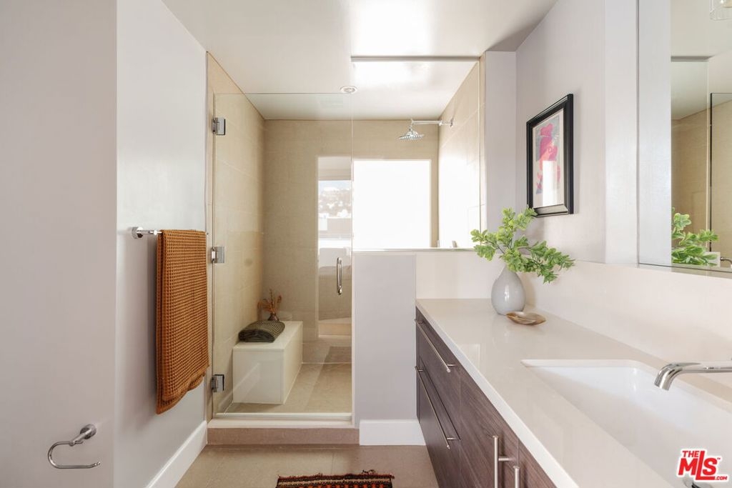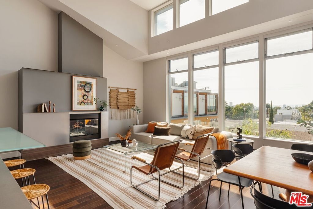 Beautiful two-story architectural penthouse in prime West Hollywood. Welcome home to The Harper West Hollywood, where the residences enjoy the best location just moments from the neighborhood's premier restaurants, bars, shopping, and nightlife. Built in 2010, this north and south facing top floor 2BR/2BA residence showcases sweeping views of the city skyline, the Hollywood Hills and beyond. Upon entry, you're welcomed by a gracious sitting area and an oversized primary suite featuring a large walk-in closet and a spa-inspired en-suite bath with dual vanities, a soaking tub, and a spacious walk-in shower. Toward the rear of the home, the floor plan opens dramatically into a light-filled living space with soaring double-height ceilings that flood the interior with natural light throughout the day. The kitchen seamlessly opens to the living and dining area, highlighted by hardwood floors, a fireplace, dramatic two story ceilings, and unobstructed city views perfect for both relaxing and entertaining. Upstairs, a generously sized second bedroom overlooks the great room below and includes its own en-suite bath. Just off this bedroom, a large private patio offers sweeping views of the Hollywood Hills, an ideal setting for outdoor dining or sunset lounging. Additional features include a private storage locker in the garage and two side-by-side parking spaces equipped with an EV charger.