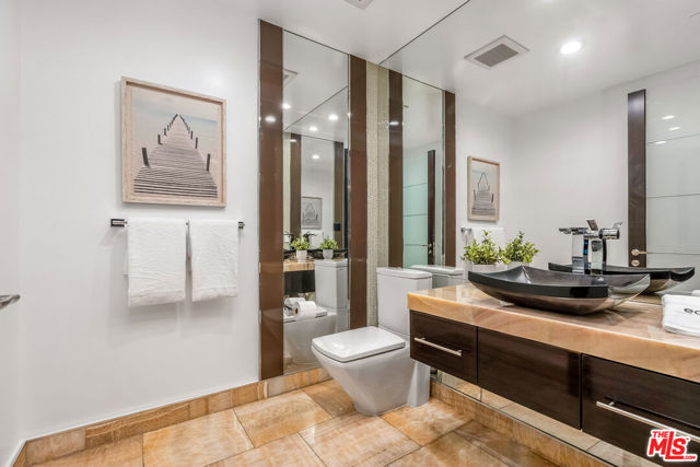 PRICE REDUCTION! PRICED TO SELL! ROCKET MORTGAGE OFFERING 1% RATE BUY-DOWN FOR THE FIRST YEAR, AT NO-COST TO BUYER. Experience elevated living in this beautifully updated & spacious condo, just moments from Beverly Hills & Century City. Located in a prestigious building with 5-star hotel-style lobby and concierge. Step inside to find newly refinished hardwood floors, new carpet, fresh paint throughout, brand-new window blinds, Nest thermostat & so much more! The gourmet kitchen features high-end GE Monogram stainless steel appliances, gas stovetop and marble countertops. Each bedroom includes its own generously sized ensuite bathrooms. The luxurious primary suite boasts a deep soak bath and plenty of counter space. Both bedrooms have frosted film on windows to provide total privacy. Unit is fully alarmed. Enjoy top-tier amenities including a front-desk concierge, a beautifully appointed gym, a serene outdoor courtyard, extra private storage and plenty of guest parking. This turnkey residence offers the ideal blend of sophistication and convenience just moments away from Roxbury Park (Tennis courts, Volleyball, Lawn bowling, and more), short distance to Beverly Hills and Century City world-class shopping, fine dining, and entertainment. Best value in the area! *Property is not in Beverly Hills proper but is adjacent. Buyer to verify schools and other important matters related to address.