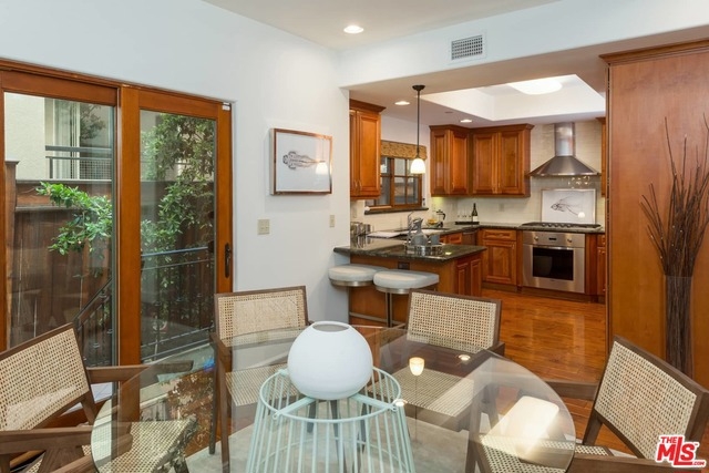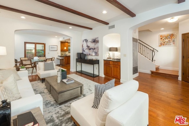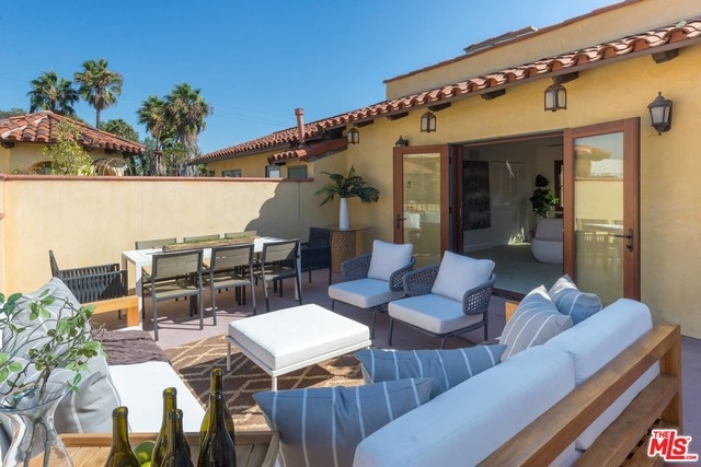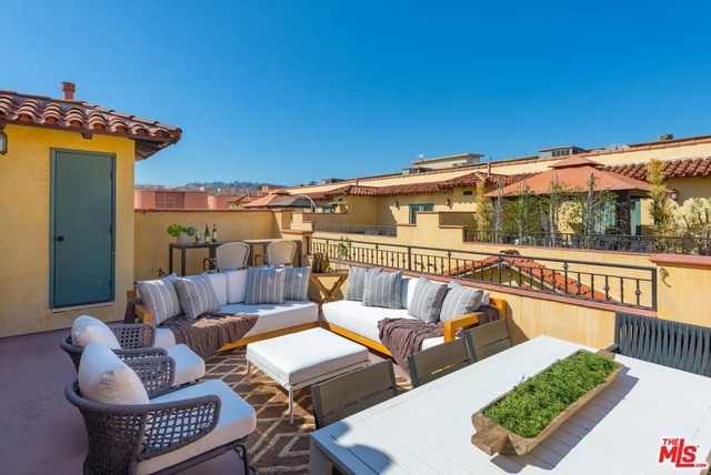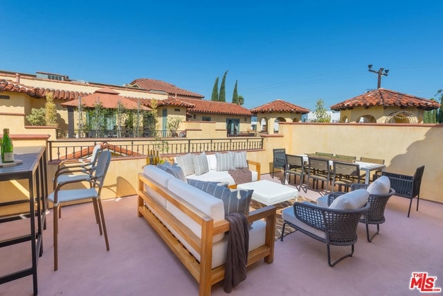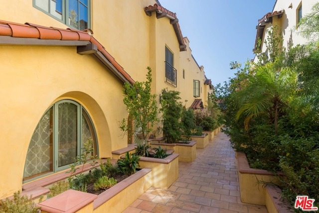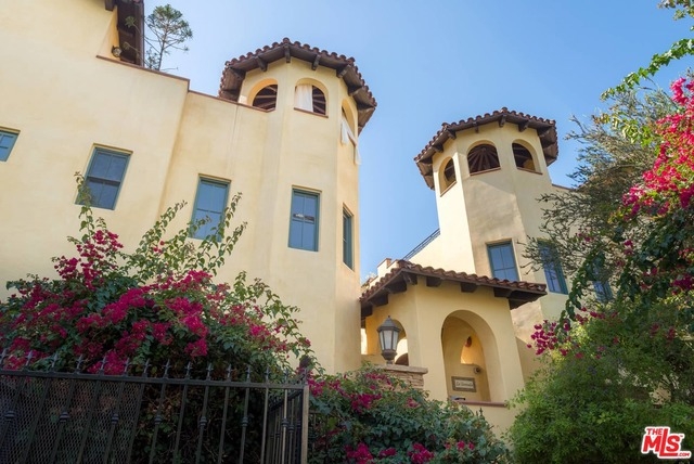 Newer construction Spanish-style townhome w/ rooftop deck and views. Located in a charming 10 unit building completed in 2008, this townhome comes complete w/ 4 beds, 4 baths with the look and feel of a single family home. Enter through private gates to a lushly landscaped courtyard and through the main door to arched walkways and tall ceilings. Entry way opens to a warm and inviting living room w/ beamed ceilings, fireplace and dry bar. Living room flows to an open dining area and sizable cook's kitchen with top of the line appliances and breakfast bar. Second floor features 3 bedrooms on same level - a Master bed with ample closet space and an en-suite bath; two additional bedrooms sharing a full bath; rounded out with conveniently located in-closet laundry. Top floor offers incredible flexibility w/ huge 4th bedroom/office/flex-space w/ en-suite bath and french doors opening to a grand scale deck offering great flow for entertaining. Subterranean parking with enclosed 2 car garage.