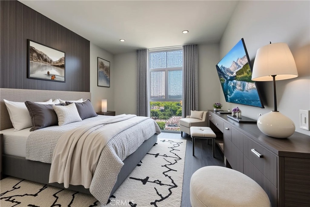 Sleek, modern, and tastefully appointed, this luxury high-rise residence offers sweeping 180-degree views of the city. Featuring 2 bedrooms and 3 bathrooms, the home is rich with premium upgrades and stylish designer touches throughout. The open-concept layout flows effortlessly from the formal entry into a spacious, sunlit living area, enhanced with a newly added fireplace framed by elegant stonework. Floor-to-ceiling double-pane windows line the entire living space, filling the home with natural light and offering direct access to an oversized balcony. The chef’s kitchen includes top-of-the-line appliances and custom cabinetry, and opens to the main living areas—perfect for entertaining. A nearby laundry room adds convenience with extra pantry storage and a discreet service entrance. Additional highlights include a custom-built bar with wine fridge, a flexible office or reading nook, and a luxurious primary suite with a spa-inspired bathroom, extensive closet space, and a dedicated dressing area. With full-service amenities such as pool, gym, valet, recreation area and security. this is a rare opportunity to own a refined, turnkey residence in a prime location.