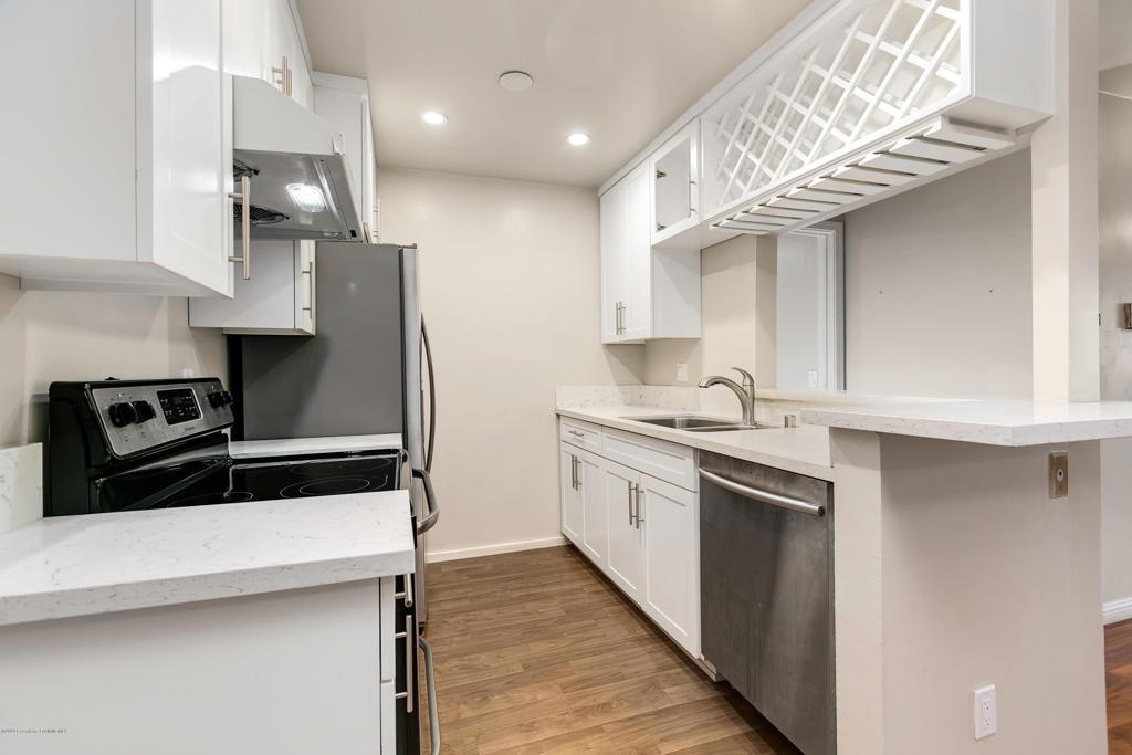 Wonderful one bedroom just minutes from Sunset Blvd shops & restaurants. Completely remodeled and privately located near the back of the complex, this one bedroom offers a large living area, dining area and inside laundry. Kitchen features quartz counter-tops, breakfast bar, stainless steel appliances, and wine rack. Master bathroom features shower over tub, tile flooring & stackable washer and dryer. Unit comes with two parking spaces and the security of a gated community.