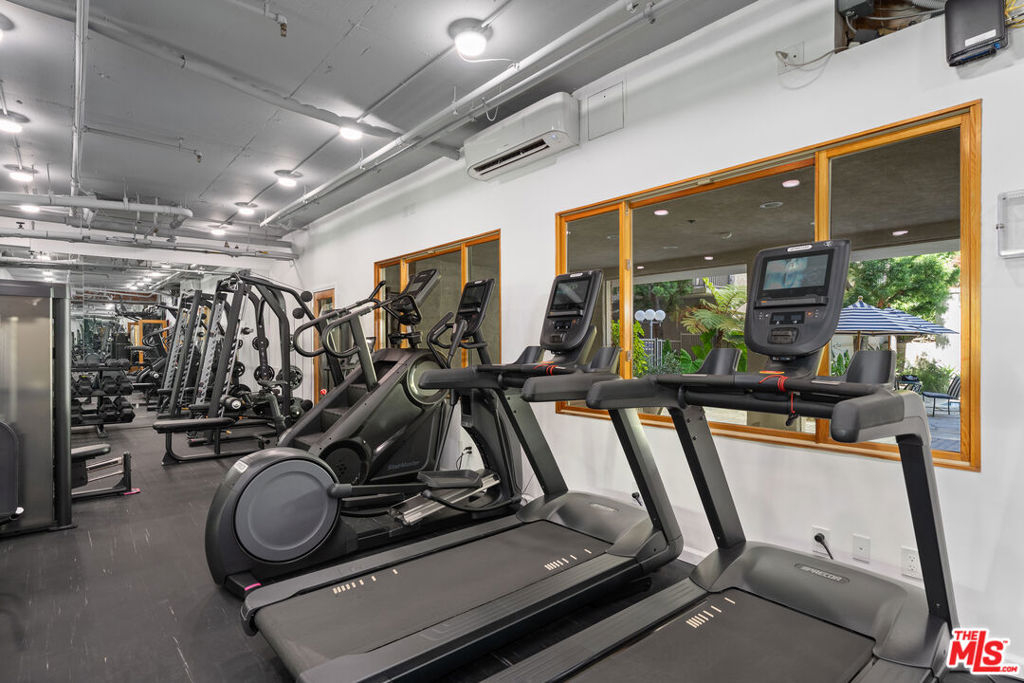Step into refined Westwood living with this captivating two-bedroom, two-level penthouse loft condo, where sophisticated design and resort-caliber amenities create an exceptional lifestyle opportunity in one of the most desirable locations on the Westside. Perched in an exclusive, resort-style building, this end-unit residence offers the perfect blend of style, comfort, and convenience, with only one shared wall, soaring vaulted ceilings, and expansive windows that flood the home with natural light. An east-facing balcony off the main living area provides skyline views of Wilshire Corridor's high-rises, lush treetops, and golden morning sun, making it the ideal spot to enjoy your first coffee of the day or unwind with a glass of wine in the evening. The newly updated kitchen features striking black granite countertops, brand-new stainless steel appliances, an upgraded sink and faucet, freshly painted cabinetry, and modern luxury vinyl plank flooring that brings warmth and texture to the space. The downstairs en-suite bedroom is a quiet sanctuary with high vaulted ceilings, peaceful green views, and enough space to accommodate a king or California king bed. The adjoining bathroom features rich travertine tile floors and countertops, with a shower over tub for both functionality and relaxation. A spiral staircase leads to an airy and flexible loft space, ideal for a home office, guest bedroom, or creative studio, complete with custom wood Shoji screen sliders that allow for full privacy or open connection to the space below, offering versatility to match your lifestyle. Throughout the unit, you'll find thoughtful upgrades including Restoration Hardware lighting fixtures, brand-new carpeting, fresh interior paint, all new electrical outlets and light switches, a new wall-mounted air conditioning and heating unit in the living room, and a new electric wall heater in the primary bedroom. The unit also comes with what is widely considered the most valuable parking space in the building, a massive end-unit tandem space that easily accommodates two oversized vehicles, making it a rare find for car enthusiasts or anyone seeking convenient, stress-free parking. Beyond the home itself, residents of this community enjoy an unparalleled amenity package, including a newly renovated fitness center equipped with Peloton and Precor machines, a relaxing steam room and sauna, a heated pool and spa surrounded by tranquil landscaping, koi ponds, waterfalls, and multiple outdoor seating areas for lounging or socializing. Indoors, a beautifully appointed clubhouse with a catering kitchen, plus a separate media lounge with TV, provide inviting spaces to entertain or unwind. Added security and ease of access come with recently upgraded fob-controlled entry to all common areas, while on-site EV charging stations, bike storage, and multiple laundry options support a modern, connected lifestyle. Located directly across the street from a sprawling park with tennis courts, basketball courts, soccer fields, and a dog park, this location offers active outdoor living just steps away, and provides effortless access to UCLA, Westwood Village, Century City, Beverly Hills, and the upcoming Purple Line subway station, making this both a prime investment and a peaceful retreat. The HOA dues include electricity, water, trash, and earthquake insurance, offering both value and peace of mind. Whether you are searching for a luxurious primary residence, a stylish pied--terre, or a smart investment property in one of LA's most dynamic neighborhoods, this loft is truly one-of-a-kind, blending comfort, character, and convenience in a setting that feels like an urban sanctuary. Don't miss your chance to own this rare gem in the heart of Westwood's most exclusive condo community.