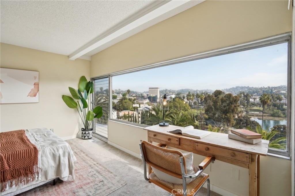 Welcome to 1701 Clinton St., an exquisite mid-century modern home designed by renowned architect Allyn Morris. This stunning residence is nestled in the vibrant heart of Echo Park, offering unparalleled panoramic views of Echo Park Lake, the majestic mountains, and the sparkling city lights of downtown Los Angeles. As you step inside, you are greeted by an open-concept living space that is bathed in natural light, creating an inviting atmosphere perfect for both relaxation and entertaining. The modern kitchen is a chef's dream, featuring stainless steel appliances, a movable island for added versatility, and breathtaking views that inspire culinary creativity. The upper level of the home boasts generously sized bedrooms, each designed as peaceful retreats. The primary bedroom is a standout feature, offering sweeping views of the lake that provide a serene backdrop for your daily life. The updated bathroom is bright and airy, enhanced by a skylight that fills the space with natural light. Additional highlights of this property include dedicated parking, ample storage solutions, and access to a newly renovated teardrop-shaped pool, perfect for enjoying sunny days and warm evenings with family and friends. Conveniently located just minutes from Michael Park Lake, Glendale Boulevard, and the vibrant shops and restaurants of Sunset Boulevard, this home combines the tranquility of Echo Park living with easy access to urban amenities. Don’t miss the opportunity to make this exceptional mid-century modern retreat your own. Schedule your private tour today and experience the allure of 1701 Clinton St. firsthand.