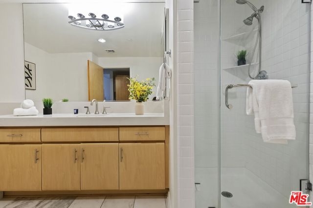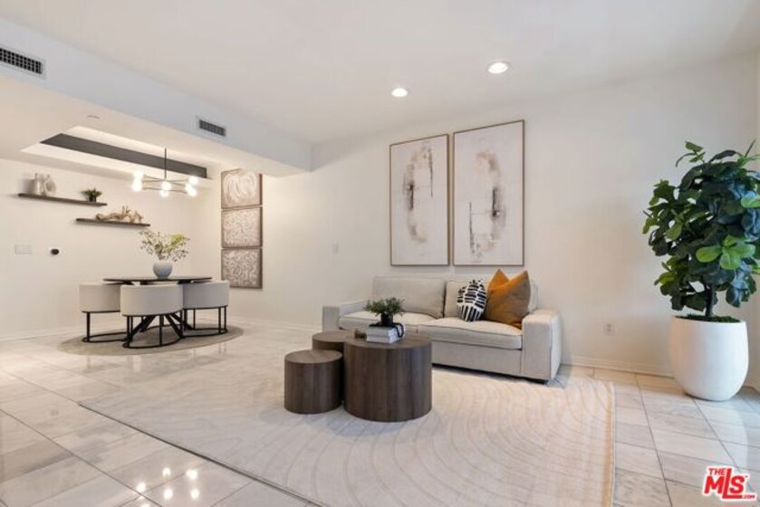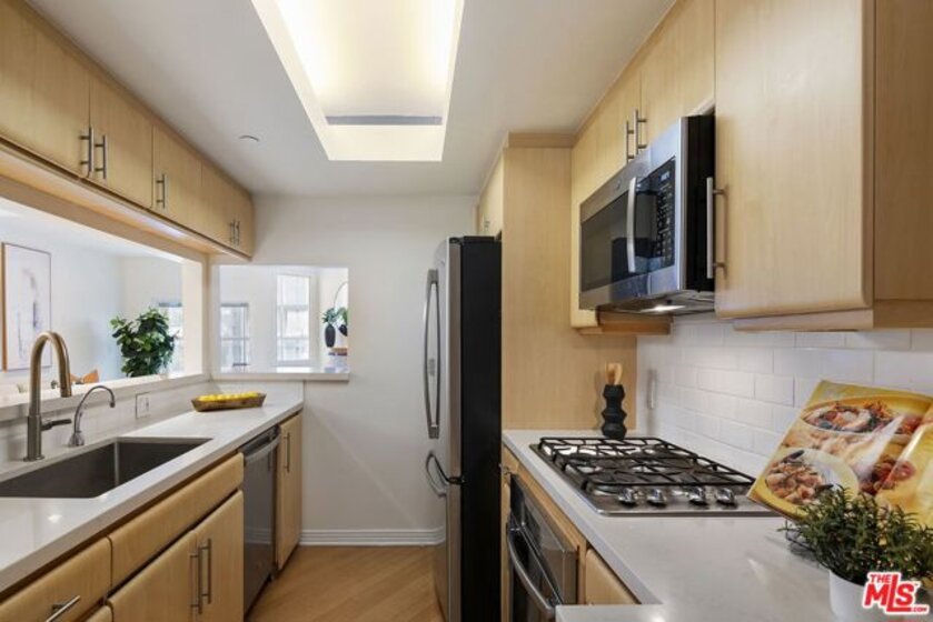Located in a prime central Brentwood location, this private and well appointed 2-bedroom, 3-bath townhouse offers city and mountain views along with a spacious, comfortable layout spanning 1,576 square feet. A rare and valuable feature is the dual entrances, one on each level, providing added flexibility and convenience for daily living, guests, or a work-from-home setup. The upper level features an open-concept design with a modern kitchen equipped with stainless steel appliances, a dedicated dining area, and a generous living room with marble floors, a gas fireplace, and a guest powder room. A sun-drenched glass-enclosed bonus space makes the perfect office or reading nook. Downstairs, both bedrooms offer privacy and comfort. The expansive primary suite includes a sitting area, two closets (including a walk-in), and a luxurious en-suite bath with a soaking tub and separate shower. The second bedroom also enjoys its own full bath. This level also includes a side-by-side laundry area, extra storage, and direct access to a private outdoor patio. Additional amenities include Nest thermostats on each level, side-by-side parking spaces, ample guest parking, and a dedicated storage cage. The secure building offers resort-style living with a pool, spa, sauna, and gym. Ideally located near UCLA, the 405, top-rated schools, and Brentwood's premier shops and dining.