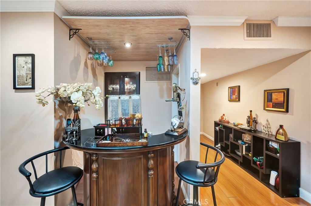 Prime Hollywood living in an unbeatable location near Runyon Canyon and just five minutes to the Sunset Strip. This 1 bedroom, 1 bathroom residence, offers the perfect balance of city energy and private comfort. The home features beautiful flooring throughout and a well designed layout that maximizes space and natural light. The kitchen is bright and inviting with granite countertops, abundant cabinetry, and generous counter space. A built in bar adds style and function, creating an ideal setting for entertaining or unwinding at the end of the day. The bathroom is elegantly appointed with a double sink vanity, rich wood cabinetry, and a modern glass enclosed shower with sleek marble style finishes, delivering a refined and updated feel. One of the most desirable features of this property is the secure private patio. Tucked behind wood fencing and surrounded by lush greenery, it feels like a hidden garden retreat in the middle of Hollywood. Perfect for morning coffee, evening gatherings, or simply enjoying your own outdoor sanctuary. Residents enjoy access to a pool and jacuzzi, offering a resort inspired lifestyle just steps from home. A rare opportunity to own in the heart of Hollywood, moments from iconic dining, nightlife, hiking trails, and everything this vibrant neighborhood has to offer. Submit your offers. The seller is highly motivated and ready to make a deal!