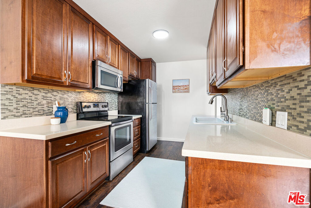 This is an amazing opportunity to acquire a freshly renovated unit and live in the middle of everything LA! A spacious 1BR/1BA condo nestled below the Hollywood Hills, offering the quintessential LA lifestyle in a picturesque setting. This bright and cheerful open floor plan seamlessly connects the upgraded kitchen to the living room and dining area, creating a fresh and inviting atmosphere. At the heart of the living room sits a decorative brick fireplace with new decorative insert adding character and warmth. Highlights include new HVAC complete with Ecobee Smart Thermostat, large windows and a private balcony that illuminate the living space, where in-unit laundry with new washing machine, new range and water purifier in kitchen bring convenience and practicality. Situated on an iconic palm tree-lined street at the base of Runyon Canyon, residents have easy access to hiking trails and scenic views, bringing nature right to your doorstep. All this is combined with 2 tandem parking spots near the elevator. Close proximity to the Metro Station and Sunset Boulevard and centrally located to all the restaurants and hot spots West Hollywood has to offer. Don't miss it!
