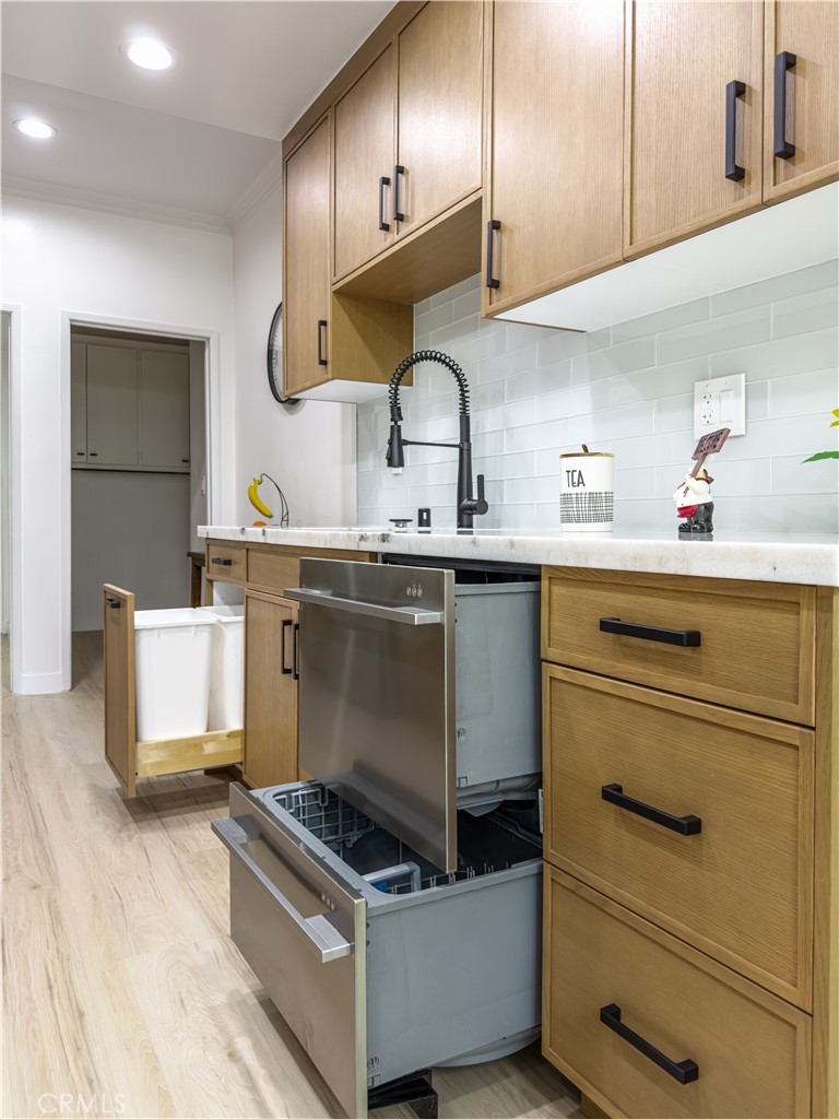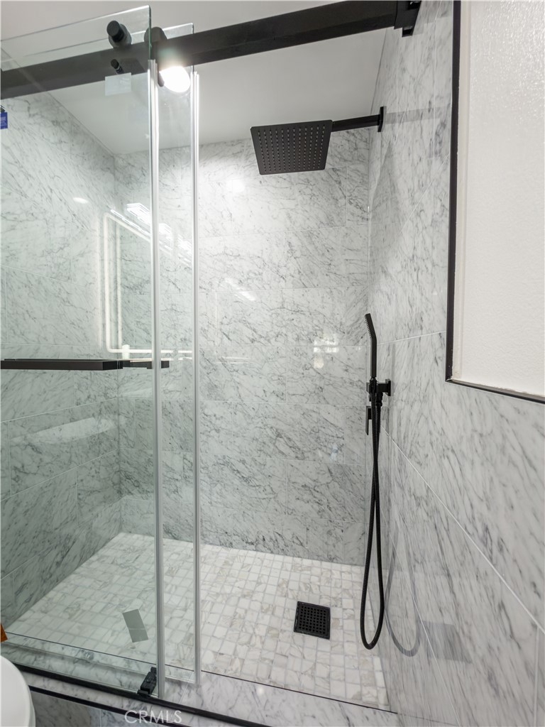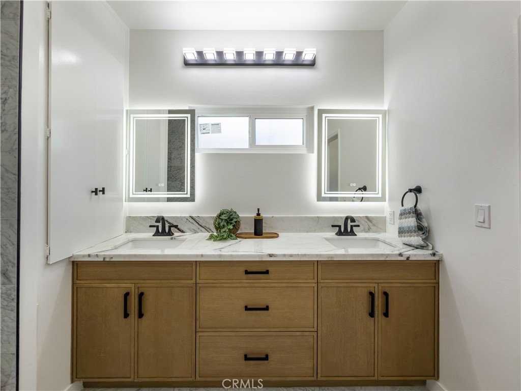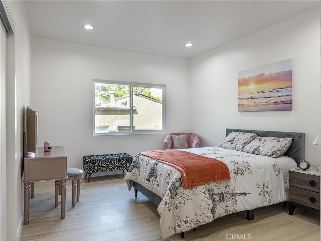 Beautifully remodeled 2-bedroom, 2.5-bath condo in prime Westwood location with all work completed under permits to ensure quality and compliance. Features include 8mm waterproof SPC vinyl flooring with 12mm underlayment, new double-pane windows and sliding door, recessed lighting with dimmers, and a marble-faced fireplace. The bathrooms showcase marble floors and backsplash, custom vanities with granite countertops, Kohler faucets, 12" rainfall showers, LED mirrors with defrost, and Kohler toilets. The modern kitchen boasts frameless cabinets, granite countertops, glass tile backsplash, and high-end appliances including a 36" American Range 6-burner (ARROB366-N), 42" ZLine range hood (619-42), GE Profile built-in microwave (PWB7030SLSS), Fisher & Paykel double-drawer dishwasher (DD24DDFTX7), Fisher & Paykel counter-depth French door refrigerator (RF170ADX4N), and Kohler faucet. Additional highlights include central air/heat, in-unit laundry room, balcony off the living room, optional no-stairs access from garage to the unit via elevator in the lobby, gated 2-spaces tandem parking, and community pool, spa, and clubhouse. Located in the desirable Westwood Charter school district, just minutes from UCLA, Century City, and Beverly Hills.