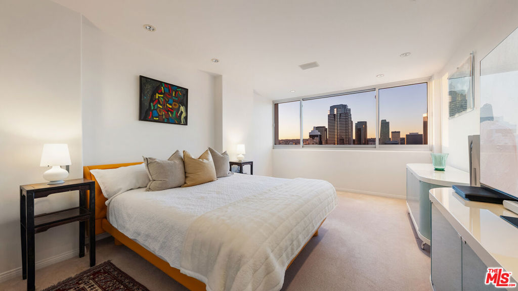 Located in the iconic Century Towers designed by world renowned architect I.M. Pei, Residence 1802W offers unobstructed 270 degree jetliner views and represents a true masterpiece of refined Los Angeles city living. Positioned on the 18th floor, the home enjoys absolute privacy from the neighboring tower, with sweeping vistas extending from the Santa Monica coastline through Century City and Beverly Hills to the rolling Santa Monica Mountains and the Griffith Observatory. Upon entering, you are immediately welcomed by expansive city views from the main living areas, creating a dramatic yet serene first impression, with a full guest bathroom conveniently located nearby for entertaining. Currently configured to maximize lifestyle and hosting, the residence features a spacious primary suite and a second bedroom thoughtfully transformed into a bespoke library and lounge, anchored by a custom bar and wine refrigeration for intimate evenings and gatherings. A quiet luxury aesthetic defines this unit, enhanced by newly installed high performance windows, premium finishes, and a custom steel and stone entry door that opens into a 1,633 square foot floor plan balancing open horizons with privacy and comfort. A high fidelity ceiling audio system is installed throughout the unit. The kitchen is designed with Sub Zero and Viking appliances paired with an Axor semi professional faucet, while the bathrooms have been curated as a wellness retreat featuring a walk in steam sauna with dual shower heads, a therapeutic soaking tub with ionized air bubbles, updated sinks, and Axor fixtures. Residents of Century Towers enjoy full service amenities including a 24 hour guard gated entry, valet parking, concierge services, tennis courts, and a resort style swimmers pool, making this a rare turnkey opportunity that seamlessly combines architectural pedigree, privacy, and a thoughtfully designed, entertainment focused layout in one of Los Angeles' most iconic residential buildings.