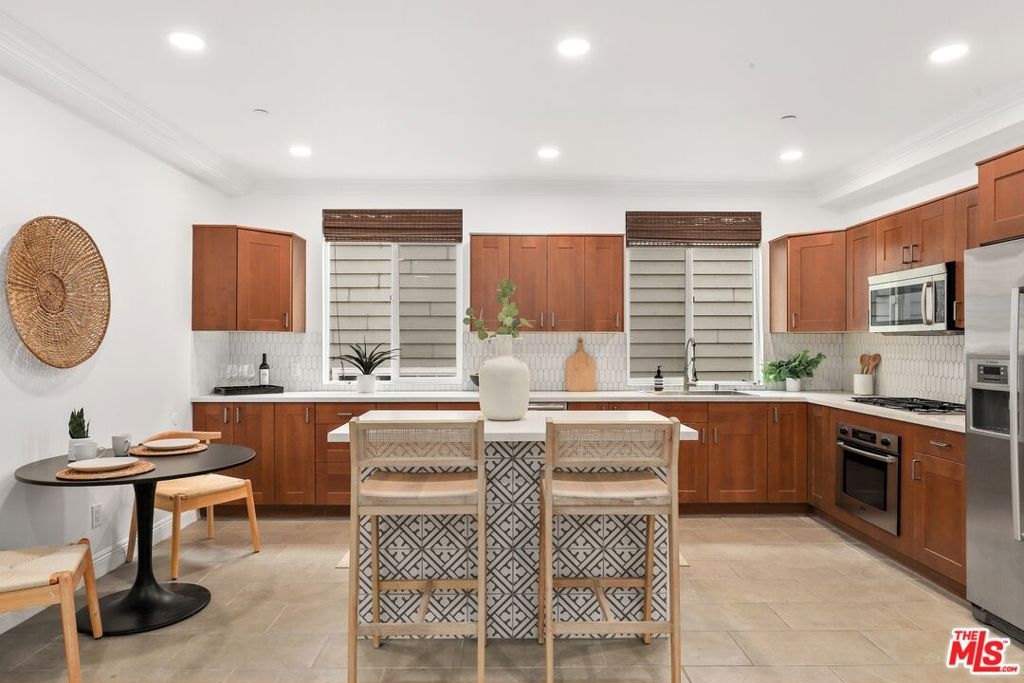 Welcome home to this stunning three-story townhouse featuring a spacious private rooftop deck with treetop and city views, your own elevated retreat above the Westside. With no neighbors above or below, this residence offers the privacy and feel of a single-family home paired with the convenience of townhome living. The open-concept main level is designed for both everyday comfort and effortless entertaining. A beautifully renovated kitchen flows seamlessly into the dining and living areas, highlighted by high ceilings that enhance the sense of space and light. A guest powder room and private balcony complete this inviting floor. Upstairs, both generously sized bedrooms feature ensuite full bathrooms, an ideal layout for privacy, guests, or roommate living. The primary suite offers high ceilings, a large walk-in closet, and a spa-like bathroom complete with a jacuzzi soaking tub. Thoughtful touches throughout the home include excellent storage and a Nest temperature control system for modern comfort and efficiency. End your days on the rooftop deck soaking in sunset skies and ocean breezes perfect for relaxing, entertaining, or enjoying your own peaceful escape. Ideally located on the Santa Monica Los Angeles border, this home delivers exceptional Westside convenience and lifestyle. Just a 10-minute drive to the beach, three blocks to the Metro, five minutes to Clover Park, and moments from the cafes and restaurants along Ocean Park Blvd and Pico. Trader Joe's is just two blocks away, and LAX is approximately 20 minutes, making commuting and travel effortless. This is privacy, space, and location all in one of the Westside's most connected neighborhoods.