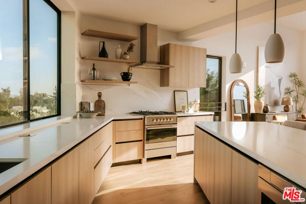 Atria is a collection of sixteen modern residences nestled in the hills of Silver Lake, offering a refined take on contemporary California living. Clean architectural lines pair with warm, livable interiors to create homes that feel elevated yet inviting. Residence 308 is a 3-bedrooms and 2 1/2-bathrooms spanning approximately 1,828 square feet, designed for effortless indoor-outdoor living. Substantial views of the Silver Lake Reservoir, Downtown LA skyline, and San Gabriel Mountains greet you as you enter the home. A spacious great room opens to a generous private deck through expansive 12-foot sliding glass doors, filling the space with natural light. White oak finishes throughout soften the contemporary aesthetic. The chef's kitchen features a full suite of appliances seamlessly integrated into paneled cabinetry, complemented by refined quartz countertops. The primary suite features a walk-in closet and a spa-inspired bathroom with dual vanities, water closet, and a large wet room. Two secondary bedrooms and a full bathroom along with a laundry closet, powder room, and additional storage, completes the thoughtfully designed interiors. An expansive roof deck provides generous space for relaxing, entertaining, and dining with sweeping panoramic views. The residence includes two dedicated parking spaces and a private storage unit.Ideally located in the heart of Silver Lake, Atria offers easy access to some of Los Angeles' most desirable lifestyle destinations. Just moments from Griffith Park and the Silver Lake Reservoir, residents enjoy a rare balance of outdoor recreation and urban convenience. The highly walkable neighborhood is home to beloved cafes, restaurants, and boutiques, with Sunset Junction, Atwater Village, Glendale, Downtown Los Angeles, and Hollywood all within a short drive.
