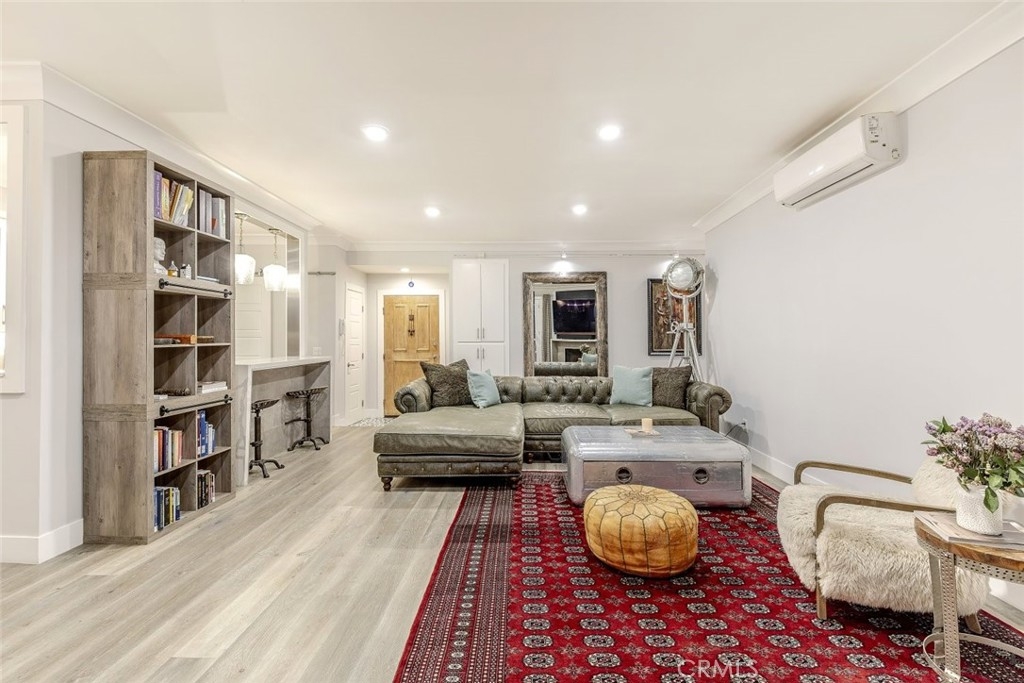 Welcome to this stunning, designer-upgraded end-unit condo at 3284 Barham Blvd: where style, comfort, and location come together effortlessly. Beautifully remodeled and redone to perfection, this spacious 2-bedroom, 1-bath home offers 1,156 sq. ft. of modern living. Once inside an open-concept floor plan featuring high ceilings, recessed lighting, crown moldings, and a cozy fireplace that create an inviting ambiance throughout. The gourmet kitchen showcases Caesarstone waterfall countertops, a farmhouse apron sink, custom soft-close cabinetry, and high-end stainless steel appliances. Additional upgrades include 100% waterproof flooring, solid wood doors, dual bathroom sinks with Caesarstone counters, soundproof walls and ceilings, and in-unit laundry with washer and dryer. Custom French doors in both the living room and primary bedroom open to a private patio of approximately 500 sq. ft., surrounded by lush greenery, a serene retreat perfect for relaxing or entertaining. Enjoy two side-by-side parking spaces, low HOA dues, and the convenience of direct street access through your private patio without entering the main building. Located just moments from the best of Los Angeles: the Hollywood Bowl, major studios, scenic hiking trails around Lake Hollywood, upscale shopping, dining, and nightlife, this condo offers the perfect balance of tranquility and city living. A true blend of design, function, and location, this rare find in one of L.A.'s most desirable neighborhoods is ready to welcome its next owner.