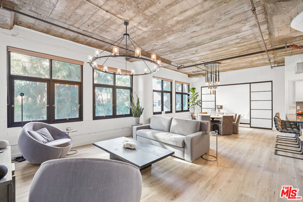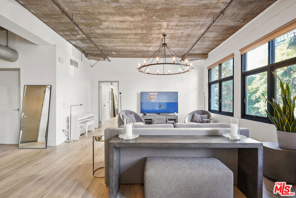 Exceptional luxury loft residence located in the highly desirable Grand Lofts community in the heart of South Park, Downtown Los Angeles. This expansive and stylish 2-bedroom corner unit offers a refined urban living experience, blending modern sophistication with industrial-inspired architectural details. The residence features concrete columns, elegant wood flooring, and expansive walls of glass with South and West facing windows, creating a bright and airy atmosphere throughout the home.Designed with both comfort and functionality in mind, the desirable split-bedroom floor plan includes two enclosed bedrooms, two bathrooms, and spacious walk-in closet in the primary suite. The modern kitchen is appointed with stainless steel appliances and clean contemporary finishes, ideal for both everyday living and entertaining. An in-unit washer and dryer with dedicated storage area adds everyday convenience.This residence ideal for modern urban living or a sophisticated work-from-home setup. The unit includes two assigned parking spaces.Residents enjoy access to resort-style amenities located in the adjacent building, including a swimming pool, fully equipped fitness center, volleyball and basketball courts, and additional recreational amenities.Ideally situated in the vibrant South Park neighborhood, this prime Downtown location offers effortless access to LA Live, Crypto.com Arena, Los Angeles Convention Center, Whole Foods, top-rated restaurants, coffee shops, entertainment venues, Regal Cinemas, Metro access, FIDM, and everything DTLA has to offer. This is elevated city living at its finestwhere luxury, convenience, and lifestyle converge.