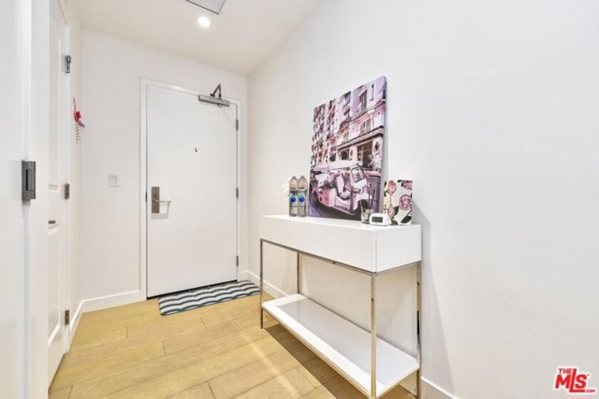 Discover sophisticated downtown living at Perla, where this stylish 1-bedroom plus den, 2-bath residence spans 1,039 sq ft on the 8th floor. Expansive floor-to-ceiling windows flood the home with sunlight and showcase impressive cityscape views.The open-concept layout emphasizes comfort and flexibility the den easily converts into a home office or creative space. A modern kitchen offers sleek cabinetry, quartz countertops, and stainless-steel appliances (including a dishwasher, microwave, and disposal). In-unit laundry adds convenience to everyday life. Residents at Perla enjoy an exceptional amenity collection: 24-hour concierge and security, a state-of-the-art fitness center, pool, elevator access, and secure covered parking with one assigned space on Level B. The HOA dues are $941 per month. Set in the Historic Core/Broadway District, the location puts you moments from Grand Central Market, the Bradbury Building, MOCA, Walt Disney Concert Hall, and easy public transit. This residence offers a seamless blend of modern luxury and downtown energy the perfect retreat in the heart of Los Angeles.