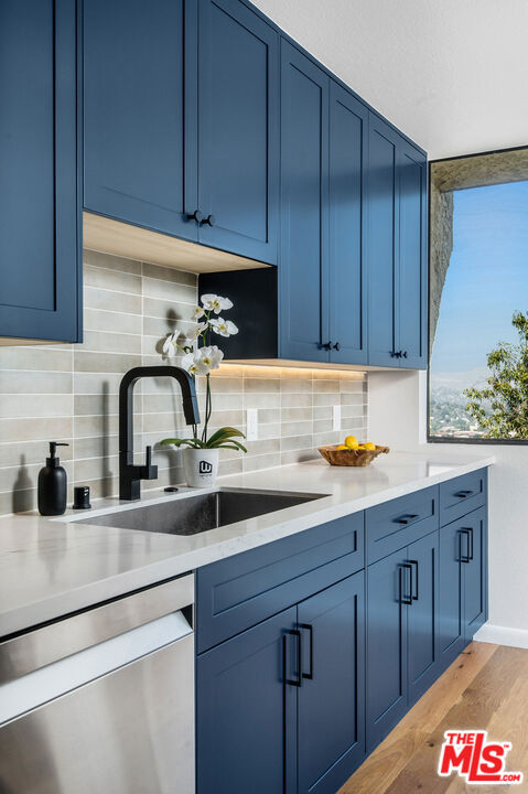 Elevated above the City in tranquil Monterey Hills, this fully renovated 2-bedroom, 2-bath residence blends designer sophistication with everyday magic, where every room frames an extraordinary, ever-changing panorama. And yes, there's a private balcony perfectly positioned for morning coffee, golden-hour martinis, and quiet stargazing nights. Completely renovated, the home unfolds as a curated world of thoughtful splendor. Engineered Blue Ridge Oak floors sweep throughout, illuminated by recessed LED lighting and enhanced by Kasa smart switches for an intuitive, indulgent living experience. The kitchen is a true showpiece: custom cabinetry, quartz countertops, LED undercabinet lighting, a tile backsplash, soft-close everything, Samsung smart appliances, and a charming breakfast area. Whether you're cooking, sipping, or hosting, the sweeping views follow. The primary suite lives like a boutique retreat, framed by its own sweeping vista. The ensuite bath elevates the experience with terrazzo floors, a custom glass shower wrapped in exquisite tilework, Delta fixtures, a floating dual-sink vanity, and an Eco Toilet. A split floor plan provides ideal separation, placing the guest bedroom on the opposite side complete with a built-in desk nook that overlooks the same cinematic horizon. The guest bath continues the elevated aesthetic with terrazzo, custom tile, a deep soaking tub, and designer details throughout. Numerous closets have been professionally outfitted, offering practical and plentiful storage. The unit also includes two parking spaces and a personal 120V EV charger, with the community offering secured access, a pool, and a spa. Beyond the front door, the lifestyle is equally compelling. Bordering vibrant Highland Park and charming South Pasadena, you'll never come up short of an eclectic mix of dining, culture, nightlife, and boutique shopping - everything from York Boulevard's cafes and galleries to Figueroa's beloved restaurants, vintage stores, music venues, and community events. You're also moments from the Metro Gold Line, the Arroyo Seco, parks, hiking trails, and the energy of some of LA's most adored neighborhoods. This is more than a beautifully renovated home; it's a modern, serene hilltop escape with the very best of Los Angeles at your fingertips. A perfect balance of tranquility, luxury, and convenience.