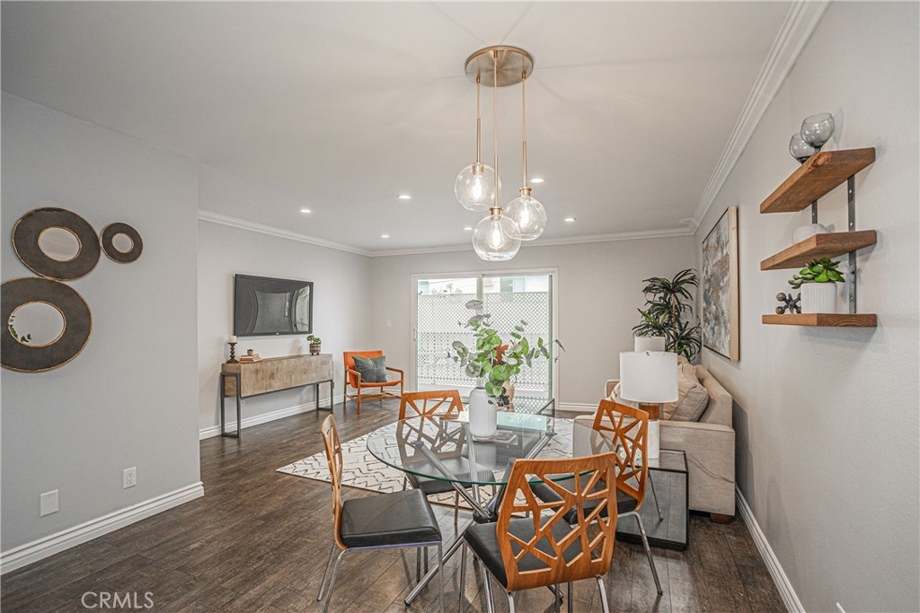 Welcome to delightful two-bedroom condo in HANCOCK PARK! This charming unit is on TOP FLOOR featuring LAMINATE flooring, UPDATED KITCHEN with STAINLESS STEEL APPLIANCES-dishwasher, electric range/stove, and microwave. Modern QUARTZ COUNTERTOP, beautiful backsplash with soft-close white cabinetry. Wonderful size bedrooms and living room, a cozy dining area. Two full bathrooms, and IN-UNIT WASHER AND DRYER, INCLUDED. RECESSED LIGHTS throughout, and DOUBLE PANE WINDOWS. TWO tandem PARKING SPACES in gated lot, 24-hour security camera for SAFETY. LOW MONTHLY HOA FEE includes fire and earthquake insurance, water and trash. Conveniently situated in prime location near restaurants, shops and markets, and subway station. Don’t miss this rare opportunity!