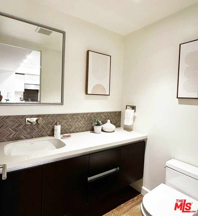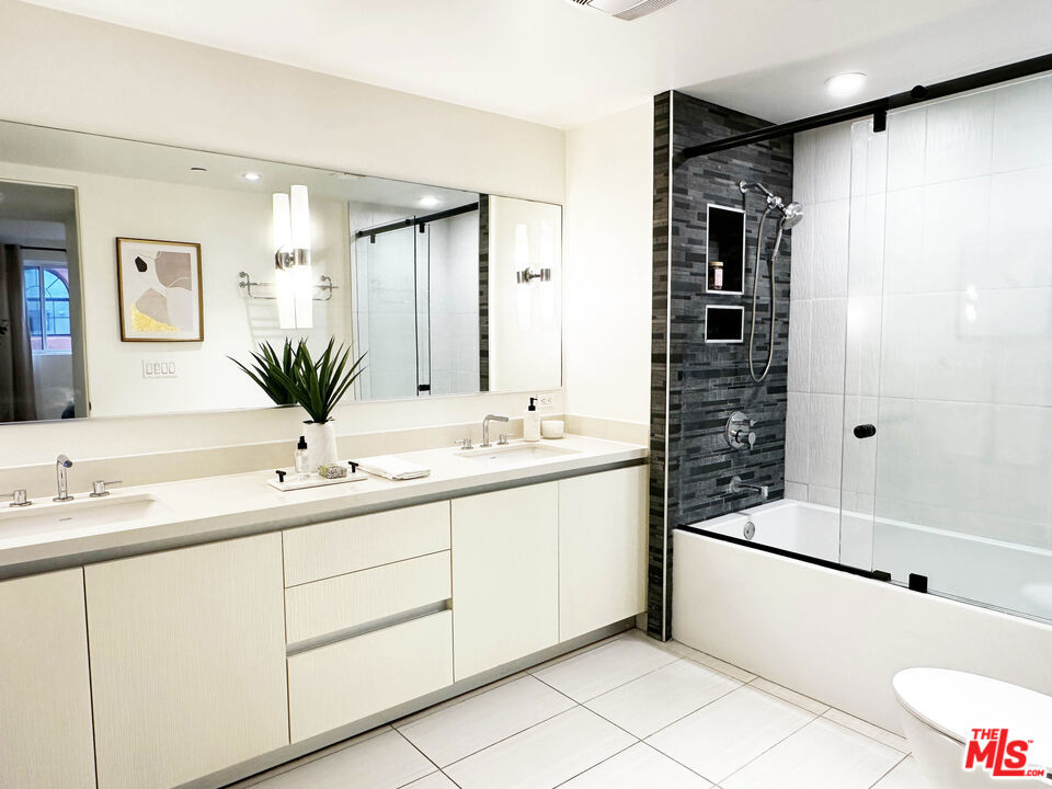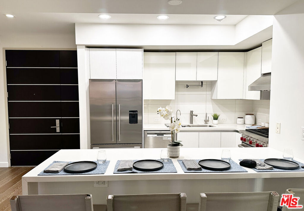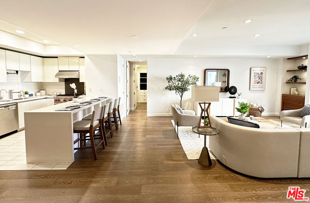 Situated on the second floor of The Cosmopolitan Brentwood, this 2-bedroom, 2.5-bath residence offers a sophisticated blend of quality, comfort, and elevated services in one of Brentwood's rare premier full-service buildings. The open living and dining area is finished with wide-plank wood floors and clean, contemporary details as well as a guest bathroom. The well-appointed kitchen features Fisher & Paykel and Bosch appliances, a Wolf range/oven, sleek cabinetry, and generous workspace. Both bedrooms include en-suite baths, with the primary suite offering dual vanities and a walk-in closet. Additional highlights include in-unit laundry, secure 2 car tandem parking and private storage. Residents enjoy a comprehensive amenity collection, including 24/7 concierge and security service, controlled access, a modern fitness center, outdoor lounge with fire pit, meditation garden, EV charging, and ample guest parking. Positioned within moments of Brentwood's acclaimed dining, cafes, grocery stores, boutique fitness studios, parks and Brentwood Village, this home delivers refined living in an exceptionally convenient Westside setting.