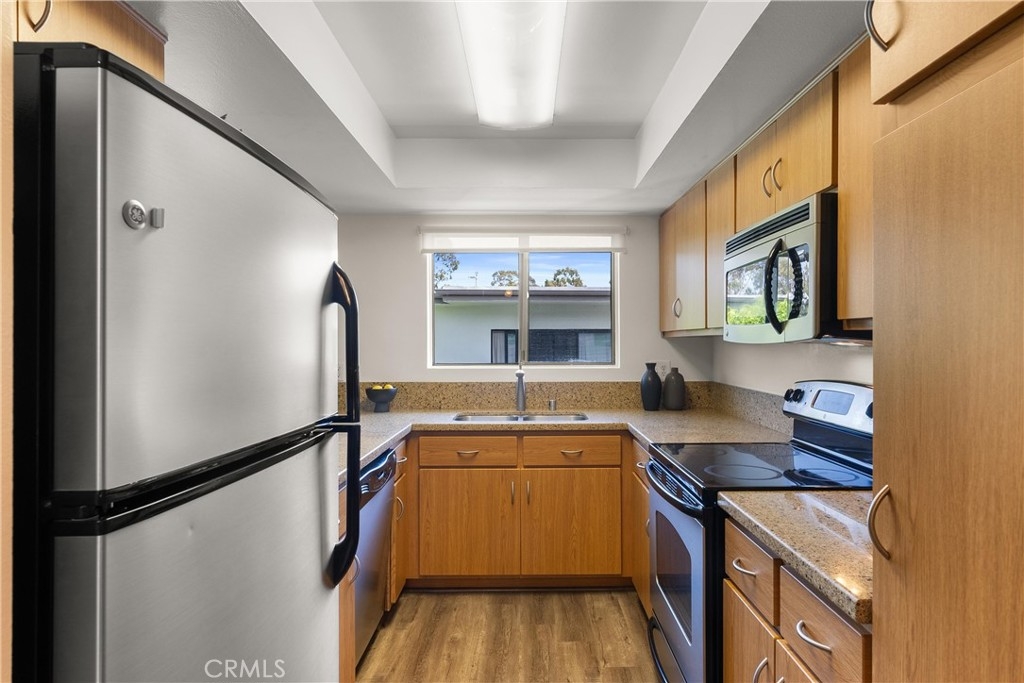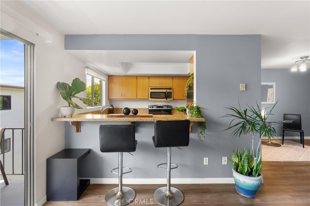 Beach Close! Bike Path straight to the Beach! TWO PARKING SPACES! Peaceful and serene TOP FLOOR location overlooking the lush gardens of the interior pathway, this unit is handsomely appointed and nicely upgraded. VA Approved Complex, Strong HOA. Modern vibes grace the interior of this beautiful Del Rey condo situated in the pristine RESORT-LIKE COMPLEX of Marina Gateway, featuring an extraordinary POOL, HOT TUB SPA, SAUNA, a FULLY EQUIPPED GYM, CLUBHOUSE and enchanted URBAN FOREST PATHWAYS and Koi pond. This urban gem features beautiful WOOD FLOORS throughout, a REMODELED KITCHEN with GRANITE counters, GLEAMING STAINLESS STEEL APPLIANCES and CUSTOM LIGHTING. The contemporary design of the spacious interior, boasts an open floorplan with formal dining area, breakfast bar and over-size sliding glass doors leading to a BEAUTIFUL BALCONY with TREE TOP VIEWS for enjoying your favorite Summer drink or al fresco dining! Other features include, new mahogany and quartz bathroom vanity upgrades, linen storage and a large WALK IN HALL CLOSET. The spacious bedroom is light and bright with a window framing tree top views. This unit comes with TWO Parking Spaces (not tandem), EXTRA CARPORT STORAGE, BIKE STORAGE and LOW HOA’s. GATED COMMUNITY. EASY COMMUTE, close to 90 and 405 FWYS and STEPS to the BALLONA CREEK BIKE PATH leading straight to the BEACH!! This is a unique opportunity, a modern urban forest beauty, surrounded by trees, close to the beach, in the wonderful Del Rey neighborhood of Los Angeles, where Marina Del Rey, Playa Vista and Culver City convene!
