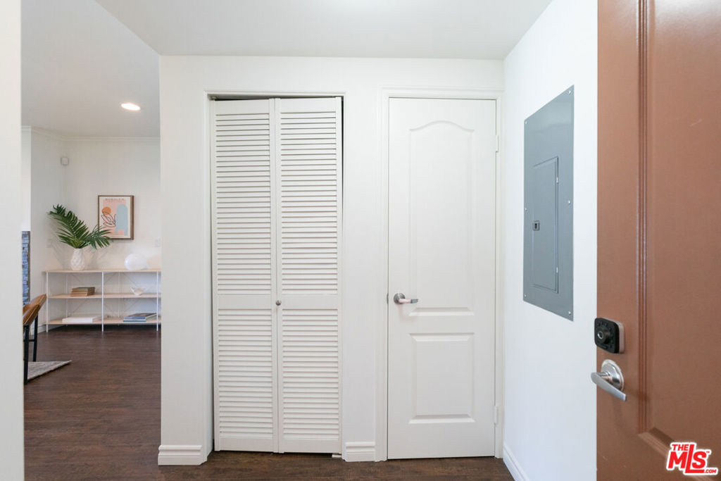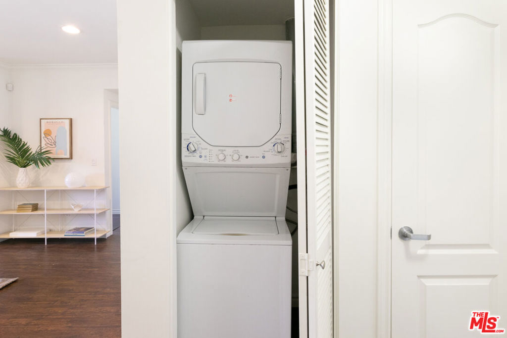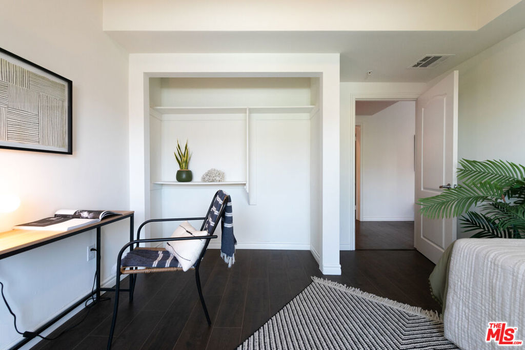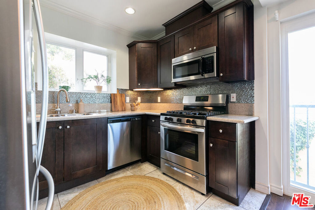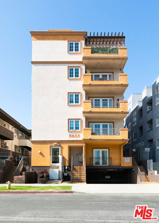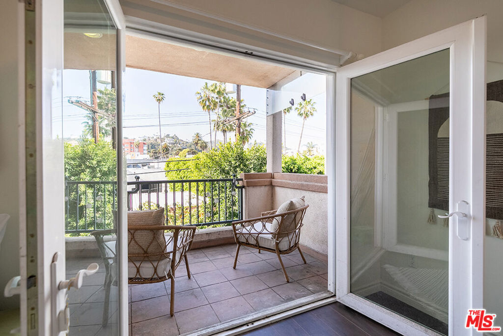 COVETED end-unit condo with FANTASTIC VIEWS of the Hollywood Hills & the world-famous Hollywood sign! Built in 2011, this RARE and HARD-TO-FIND condo is located on a quiet, tree-lined street in the heart of Hollywood. This is a very private unit in a well-managed complex with a total of 17 units. The location is UNBEATABLE! Hollywood has been going through an explosion of development and has become a destination for fabulous restaurants, cafes, shopping, and entertainment. In addition, you are close to the following: Griffith Park hiking trails, easy access to freeways, 2 blocks from the red line metro stop, near Hollywood/Highland where the Oscars take place, Target, Starbucks, and popular co-working space called Second Home. Don't forget you are centrally located and can easily get to the Westside, the Valley and/or DTLA. As you enter this unit, this WELL THOUGHT-OUT floor plan has all the amenities and services you need. At the entryway, there is a coat closet, and a stackable washer/dryer in its own closet. Step into a large open Living space with Dining area plus a nicely designed U-shaped kitchen, great for entertaining or relaxing. The HIGHLIGHT of the unit are the two large French doors which look out upon the Hollywood Hills and provide a great indoor/outdoor flow, and calming views. No other residences or buildings block your view or look into your unit. Complete PRIVACY, which is rare in a huge metropolis. The tastefully done kitchen has granite counter tops, wood cabinetry, Stainless Steel appliances (including a brand new stove/oven) and under cabinet lighting. This third floor, single-level unit has two generous-sized bedrooms, the primary bedroom has a walk-in closet plus en-suite full bath. The second bedroom has its own north-facing private balcony accessed by French doors. Lounge on your shaded balcony and enjoy the year-round lovely LA weather. The hall bathroom is nicely updated as well. Other amenities include: Central Heat/Air (AC condenser replaced January 2023), dual-paned windows, engineered flooring throughout, recessed lights, easy gas-starter fire place, built-in fire sprinklers. This low maintenance building is an EXCELLENT INVESTMENT, HOA dues are $575 a month, much lower than some of the other buildings in the neighborhood and includes earthquake insurance. Gated, well-lit parking garage, with two tandem parking spots and an elevator.